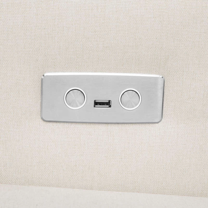 - Modern wingback style recliner with hidden push-button control panel and USB charging port