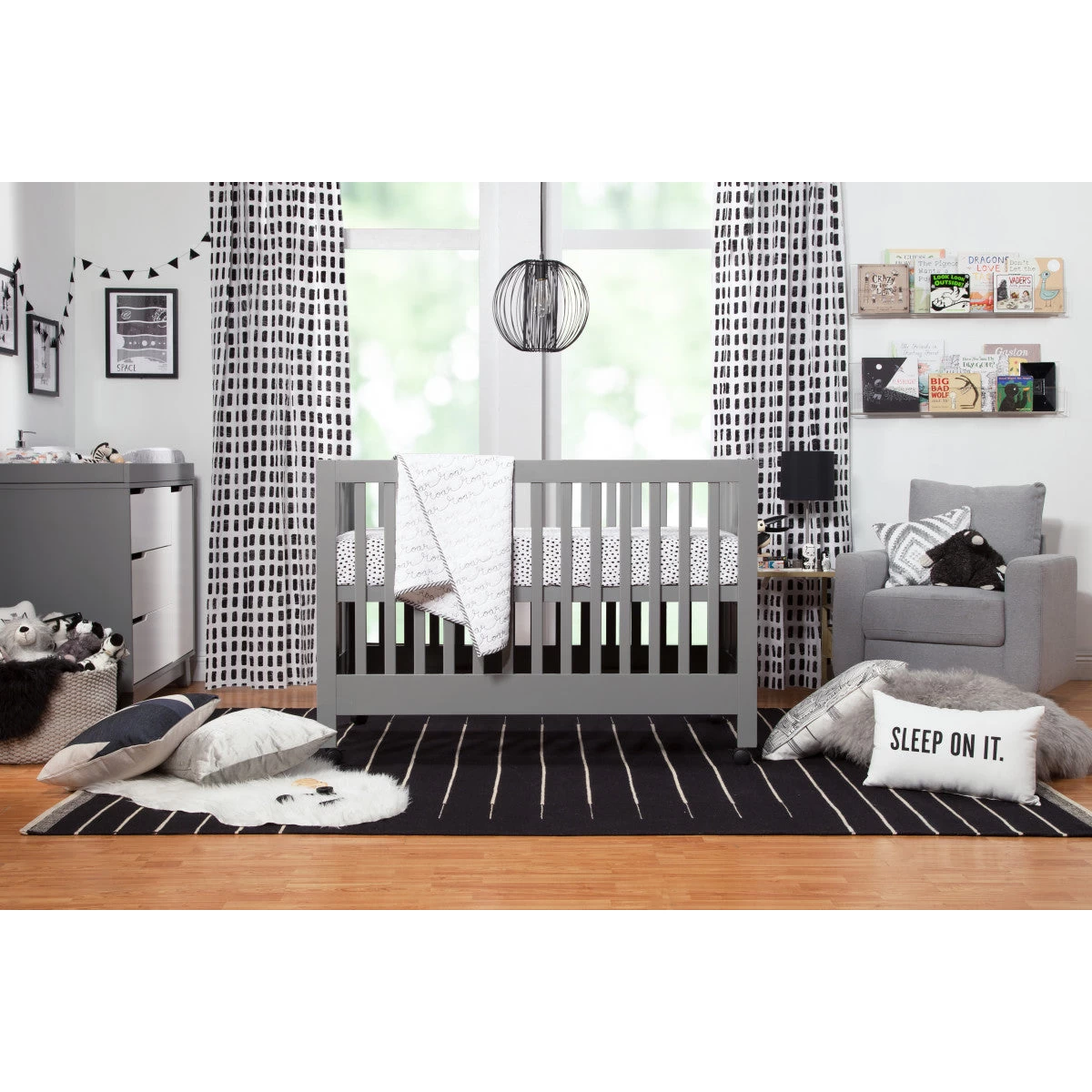 Takes a standard full-size crib mattress at least 51.625 x 27.25″ and no more than 6″ thick (not included)