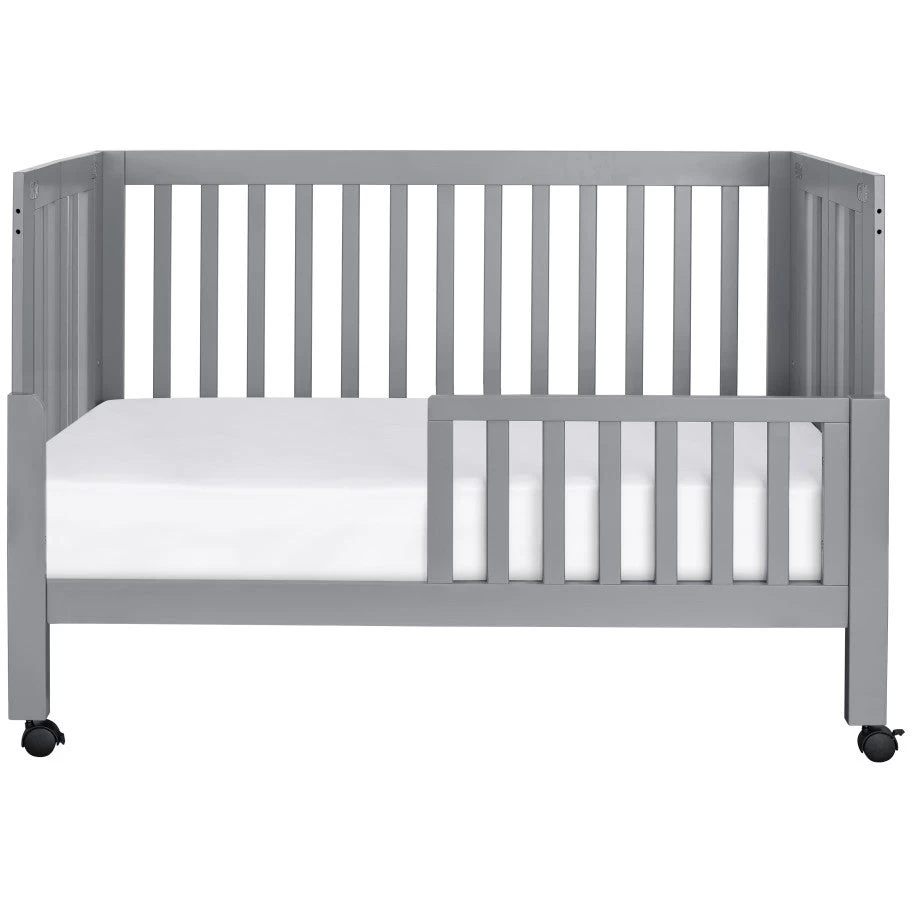 Watch your dream nursery unfold with the Maki Full-Size Folding Crib, a full-sized version of our popular Origami Mini. Its clean, geometric lines and foldable frame make this crib modern, portable and easy to store. Removable wheels and all-wood slat construction add lightweight mobility, perfect for secondary living spaces or a sleepover at Grandma’s. Convert to a toddler bed with the Maki Toddler Bed Conversion Kit (included).