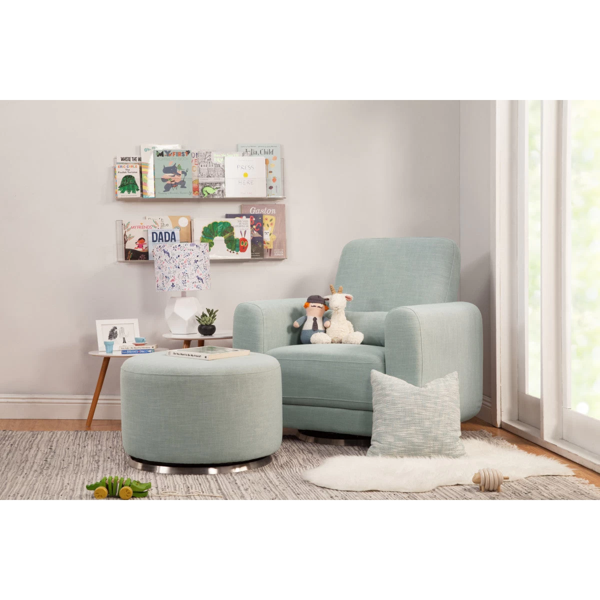 Kick up your heels and relax with the Tuba Gliding Ottoman. Perfectly paired with the plush Tuba Extra Wide Glider yet beautiful and functional on its own, this ottoman swivels a smooth 360-degrees and glides back and forth on a sleek, stainless steel base. Feeding time with your babe will feel cozy and relaxed as you rest your feet on this trendy pop of ultimate comfort.