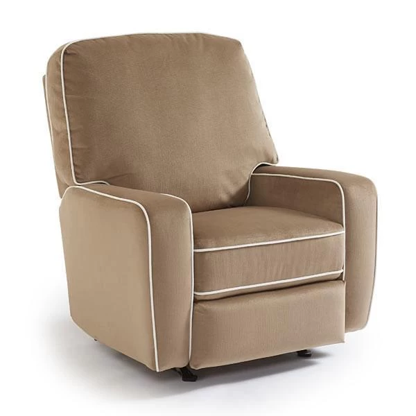 Transitionally styled, the non-chaise Best Chairs Amsterdam Recliner gets a ‘pop’ with the contrasting special cording. Available in any of the hundreds of fabric selections, consumers can pick any special cording they wish to match to the nursery’s décor. Also available without special cording. For added convenience, the Amsterdam Recliner has an inside recline mechanism