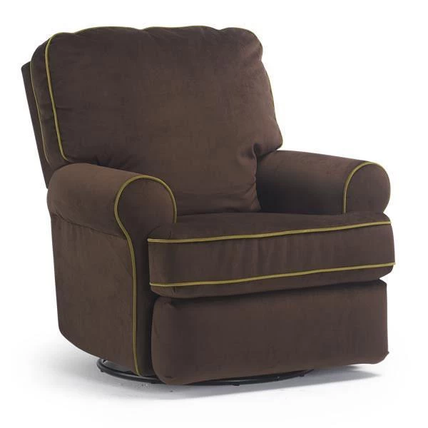 Style extends from the straight lines of the square back to the rounded, extra cushioned arms that are highlighted with contrasting cording. Comfort is not sacrificed by style. With a hidden inside handle, this swivel glider reclines to a full layout position. It is also available with as a Power Rocker Recliner, which means you can experience the whisper smooth reclining motion at the touch of a button.