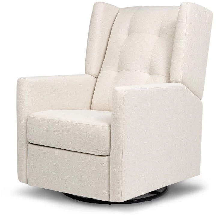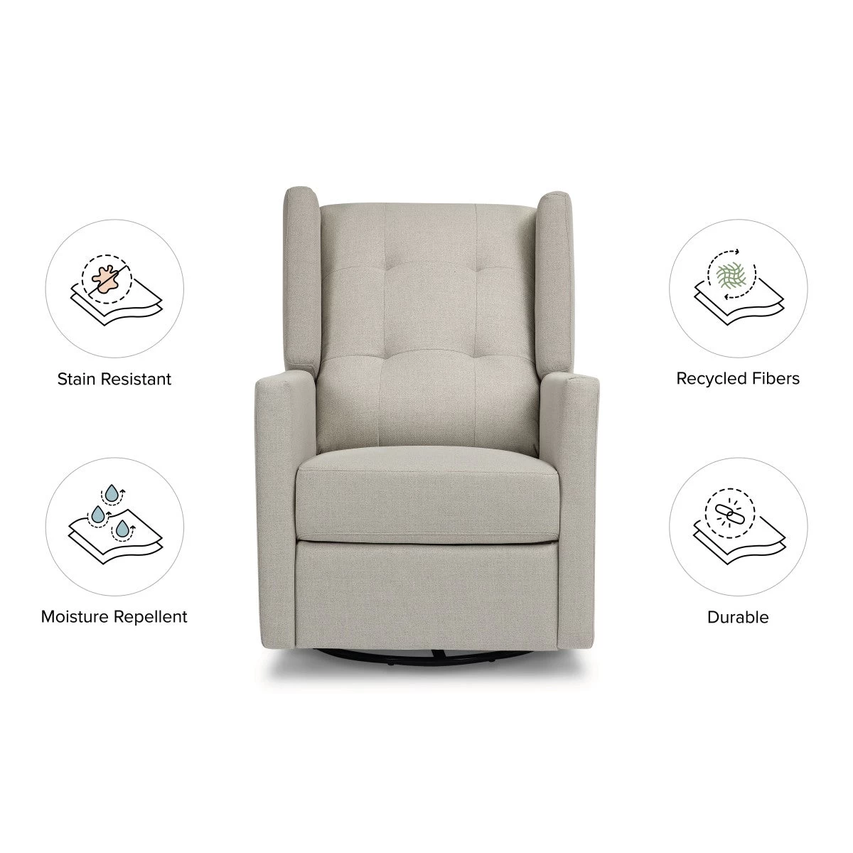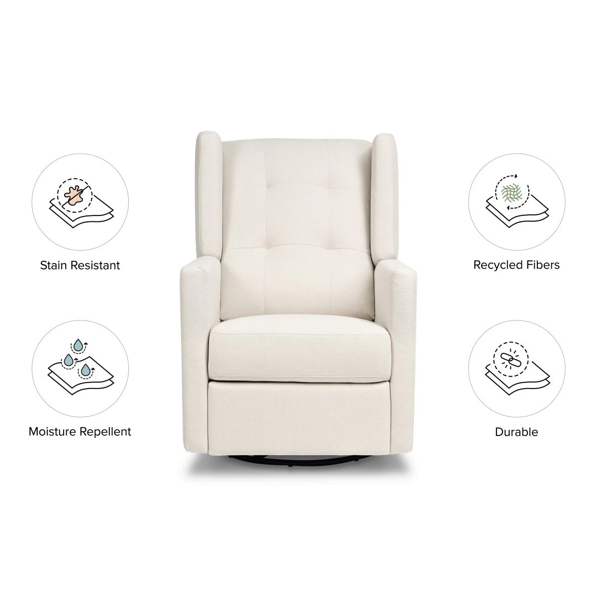 The Austen Recliner and Swivel Glider has been thoughtfully designed to make feeding time comfortable and easy. Rest easy in this comfortable, durable chair that glides, swivels, and reclines to a peaceful resting position. With its clean lines, tufted design and wingback style, this timeless and versatile recliner can easily transition from nursery to playroom or living room. Featuring a premium stain-resistant and moisture-repellent fabric, Austen will look as good as new for years to come.