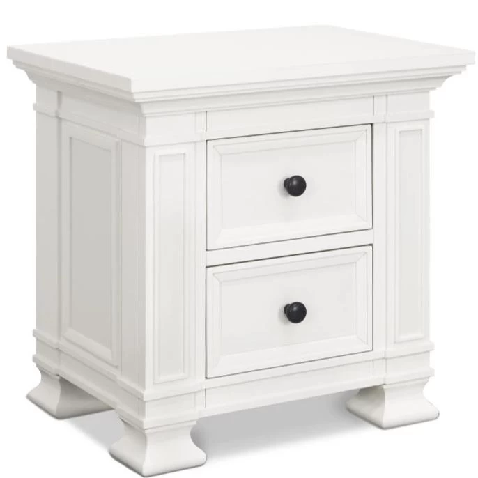 With two drawers and self-closing and ball bearing drawer glides, the Classic Night Stand is a perfect piece to add to your nursery. Timeless details come together with square bun feet, molding and metal knobs.
