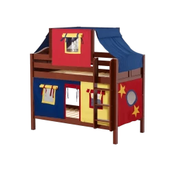 Maxtrix Twin Low Bunk Bed With Straight Ladder, Curtain + Slide