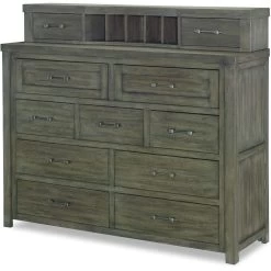 The Bunkhouse collection offers a rustic casual design that is on trend with todayâs styles. Crafted with hardwoods and Acacia veneers in an Aged Barnwood finish with custom designed Galvanized finished pulls and corrugated metal accents.