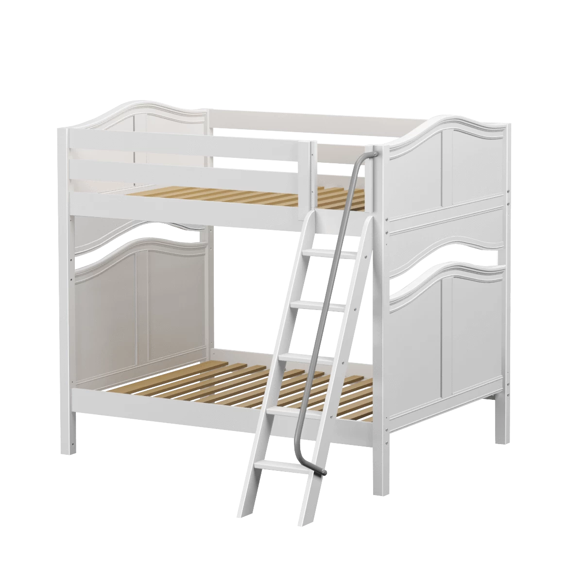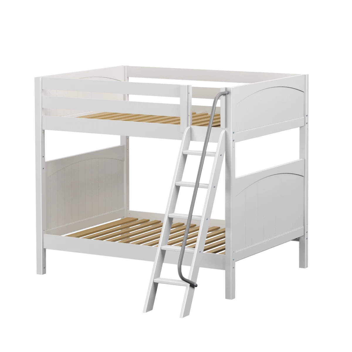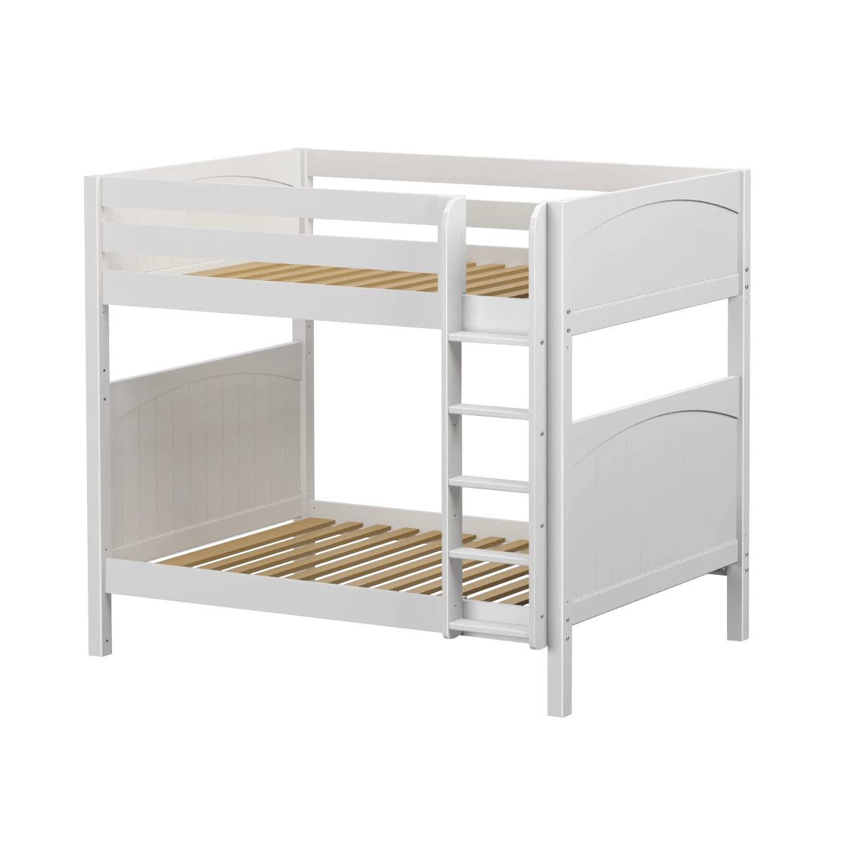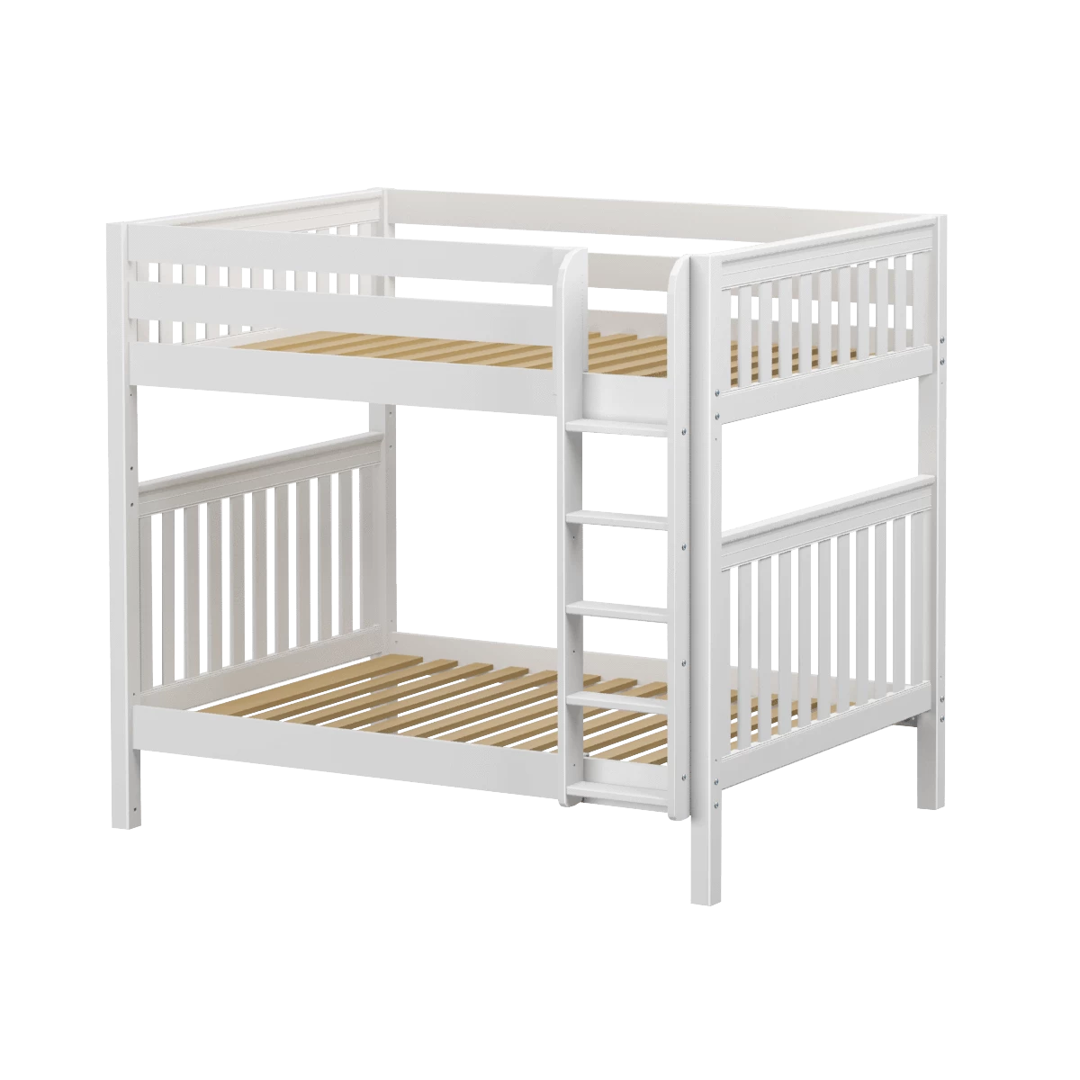 Avoid bumped heads with the Maxtrix high bunk bed! 3.5 ft of space between top and bottom allows teens + adults to sit up comfortably. Full size = extra room for growing kids, sleepovers or snuggling with parents. Choose space-saving straight ladder or extra-safe angle ladder.