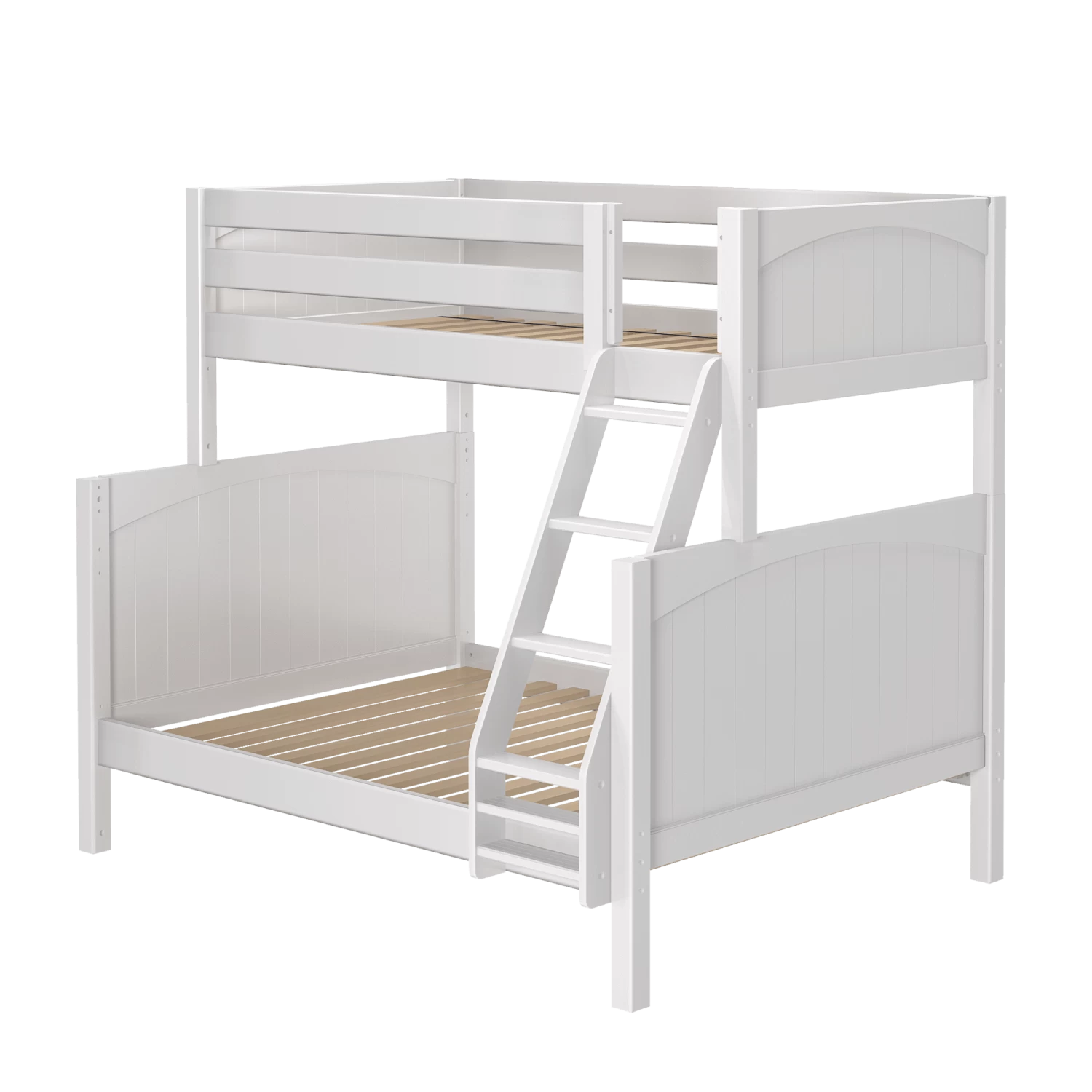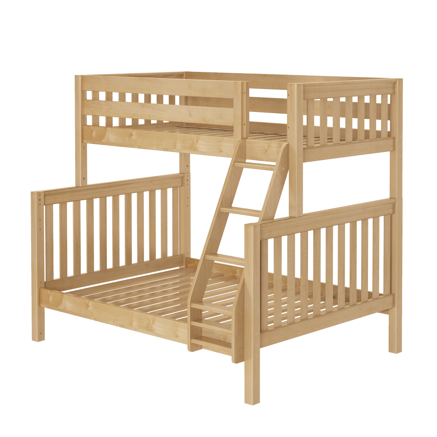 Our classic twin over full bunk bed is the perfect solution for sleeping different sizes and ages comfortably in one room. Full size bed as bottom bunk = extra space for snuggling, stories and sleepovers. Angled ladder attaches to bedside rail for clean finish + allows trundle or underbed storage use.