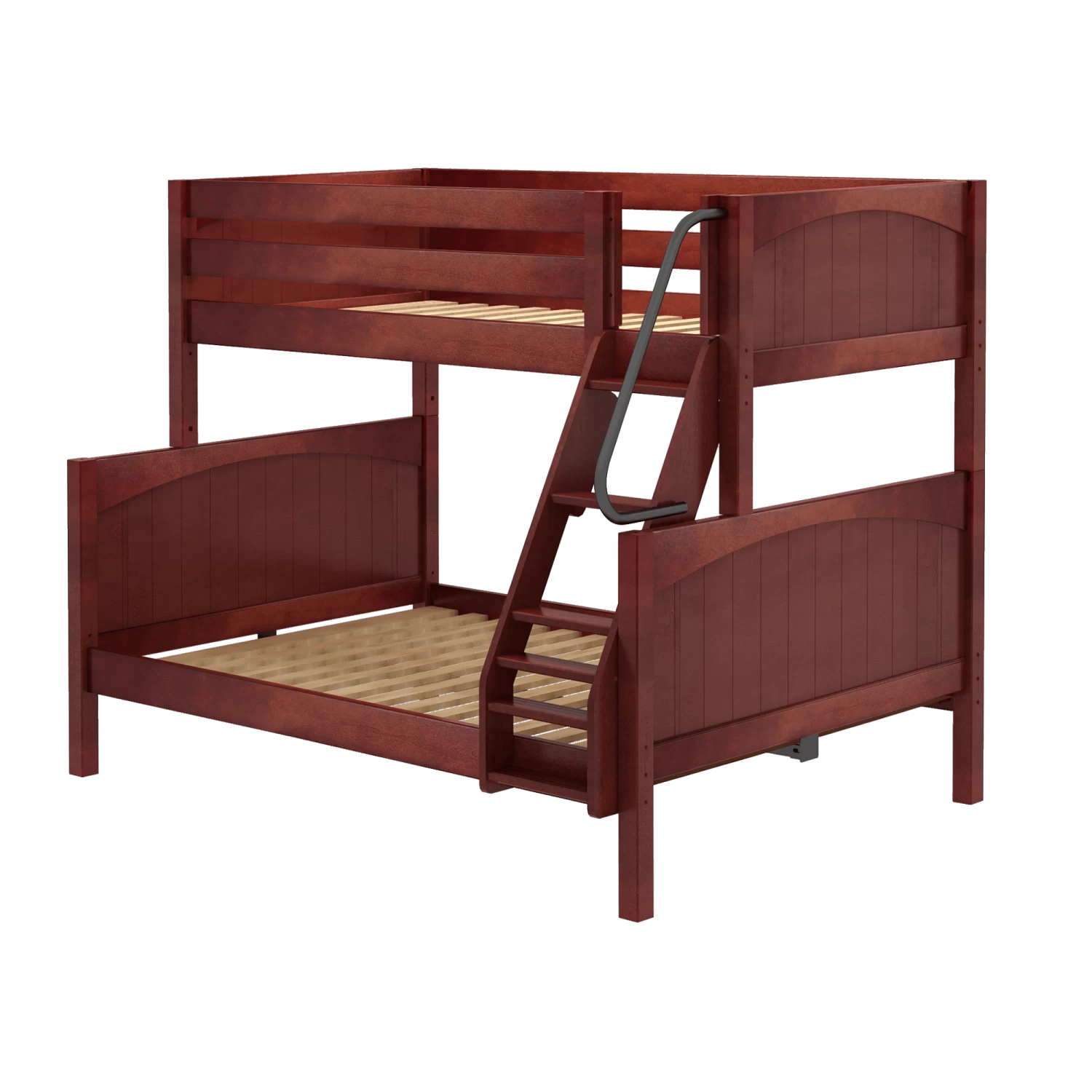 Our classic twin over full bunk bed is the perfect solution for sleeping different sizes and ages comfortably in one room. Full size bed as bottom bunk = extra space for snuggling, stories and sleepovers. Angled ladder attaches to bedside rail for clean finish + allows trundle or underbed storage use.