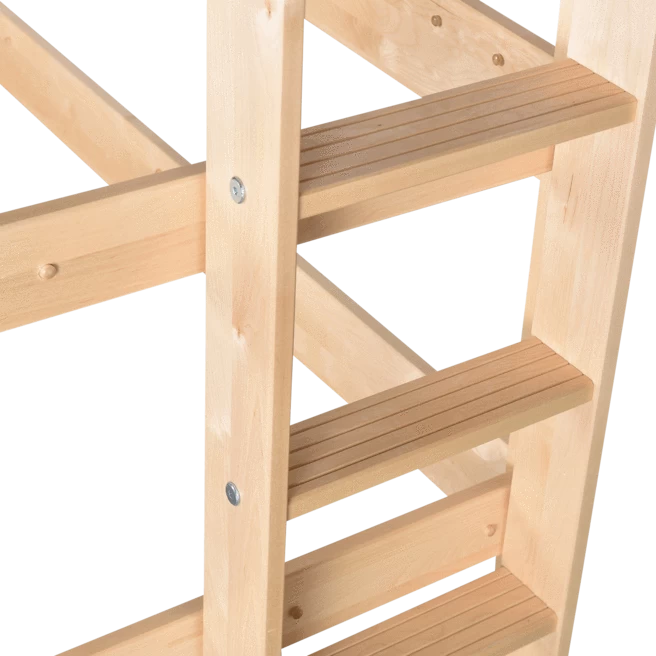 Space saving straight ladder sits flush against the bed, minimizing overall footprint.