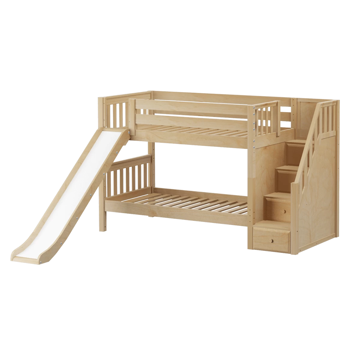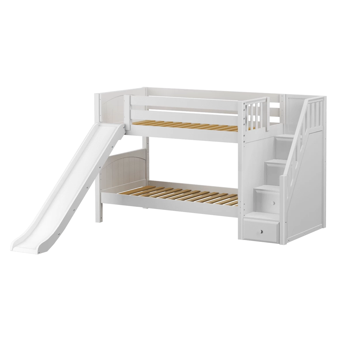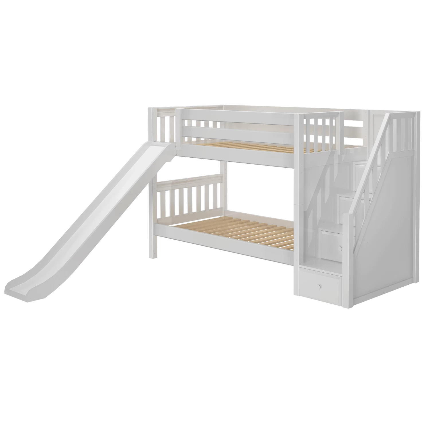 Maxtrix Twin Low Bunk Bed With Stairs + Slide