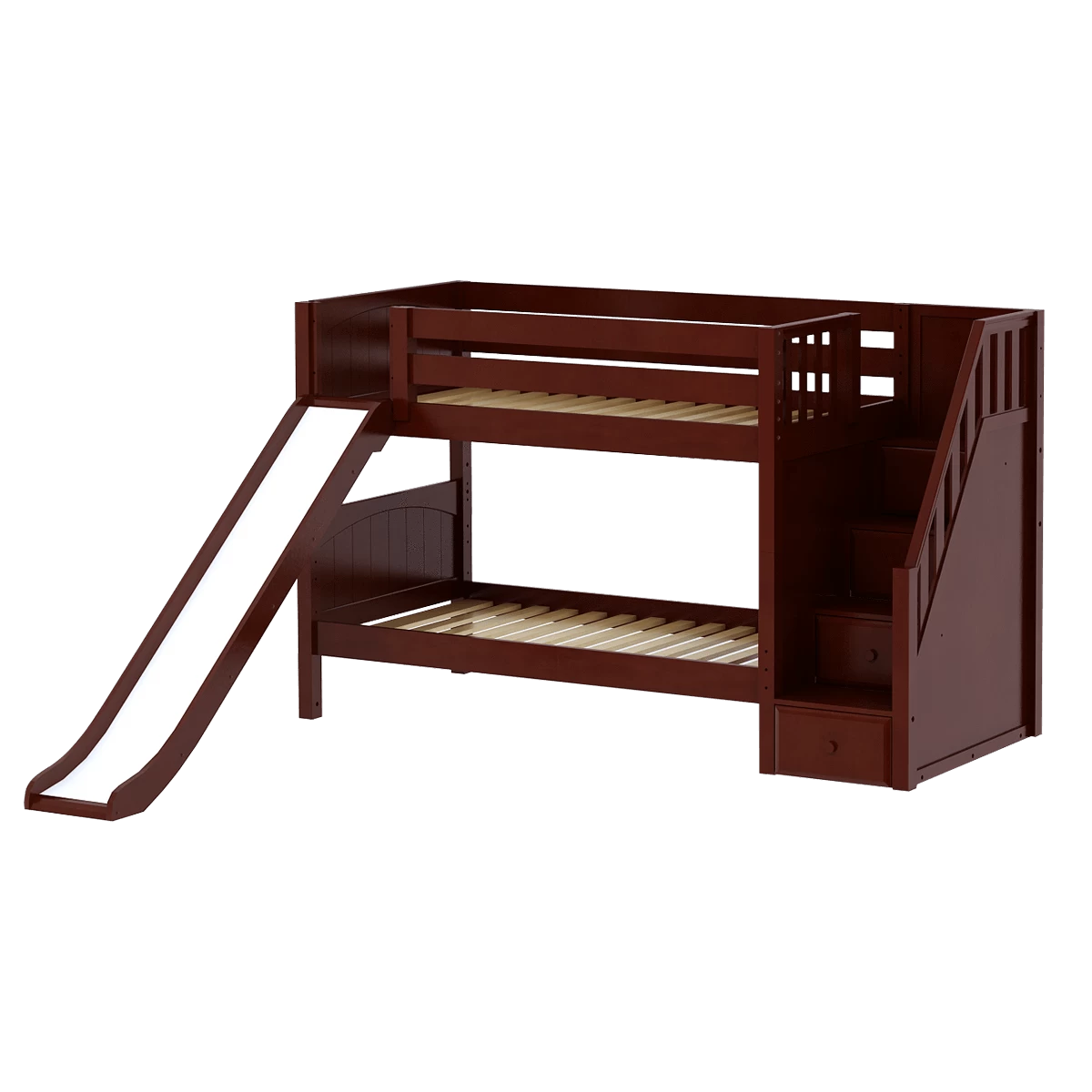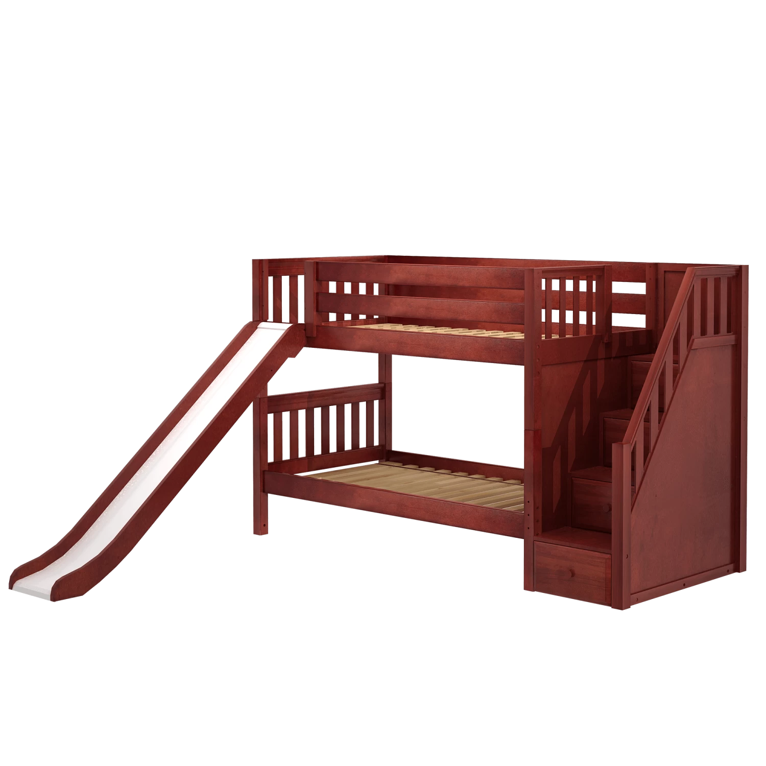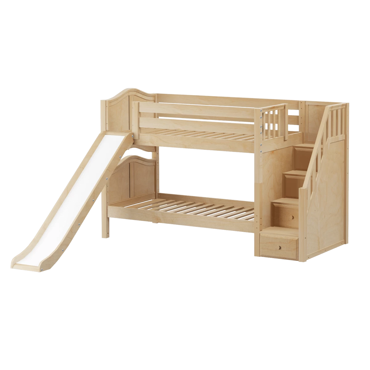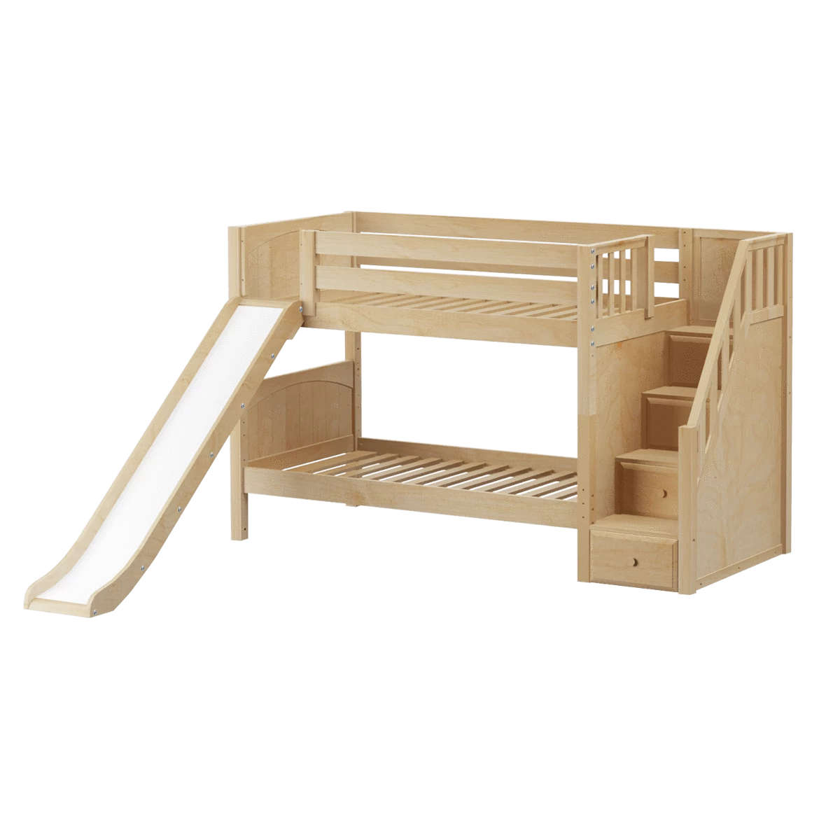 Maxtrix Twin Low Bunk Bed With Stairs + Slide
