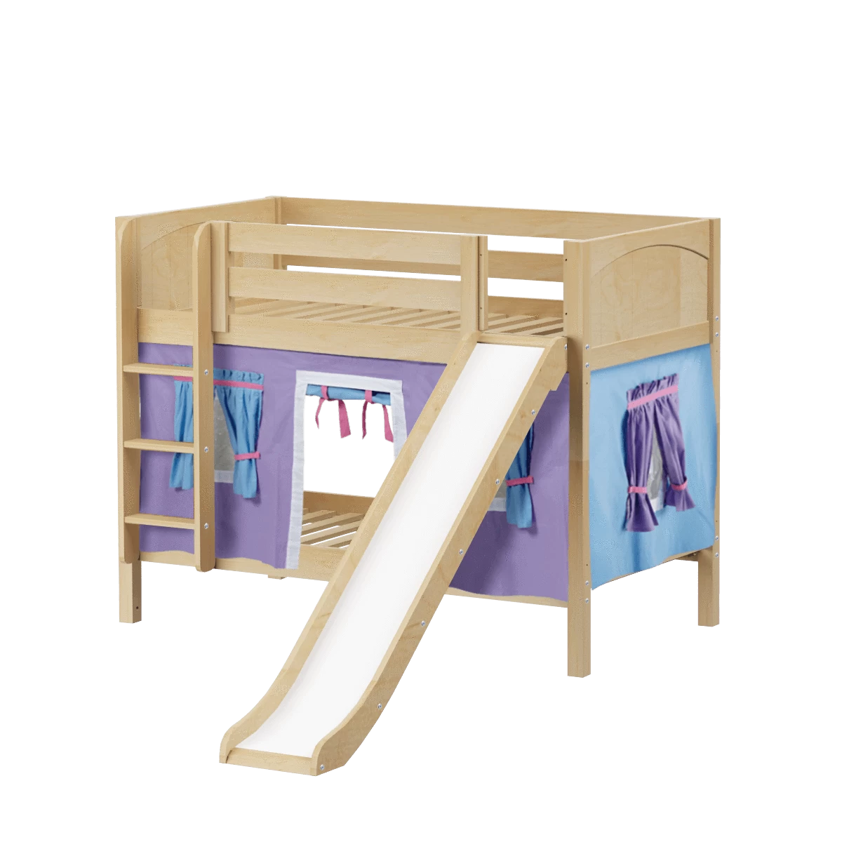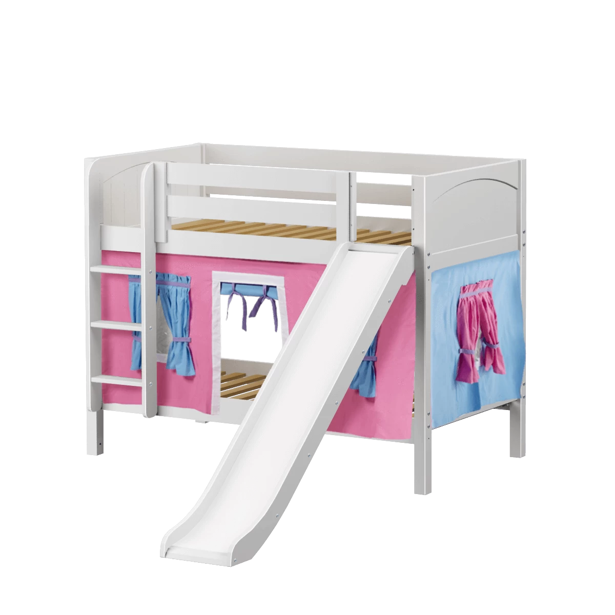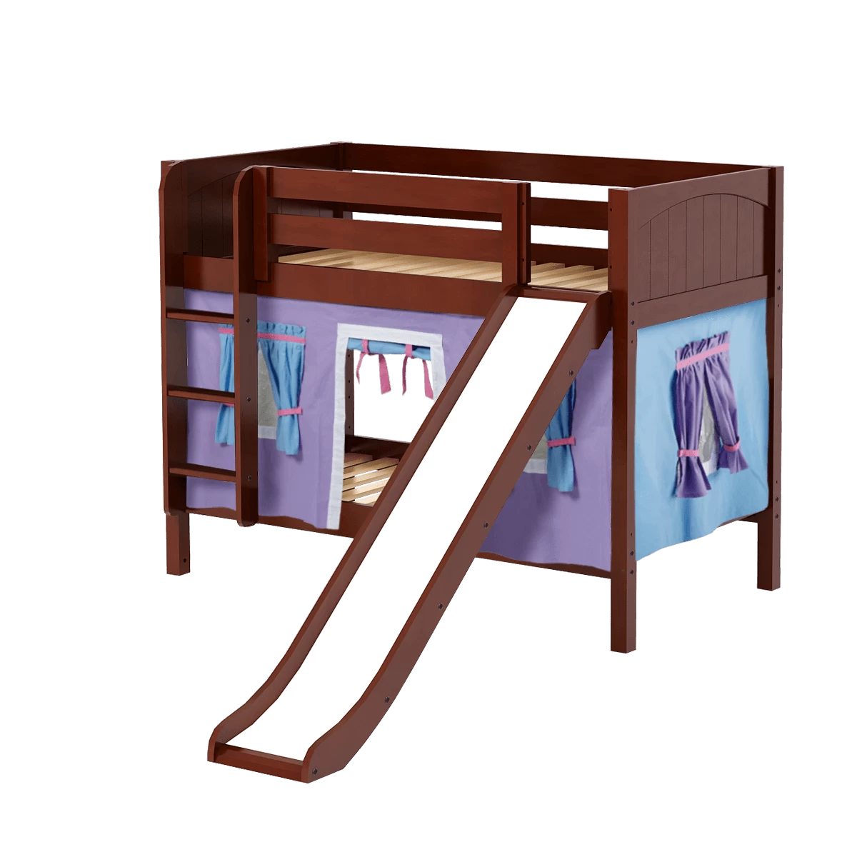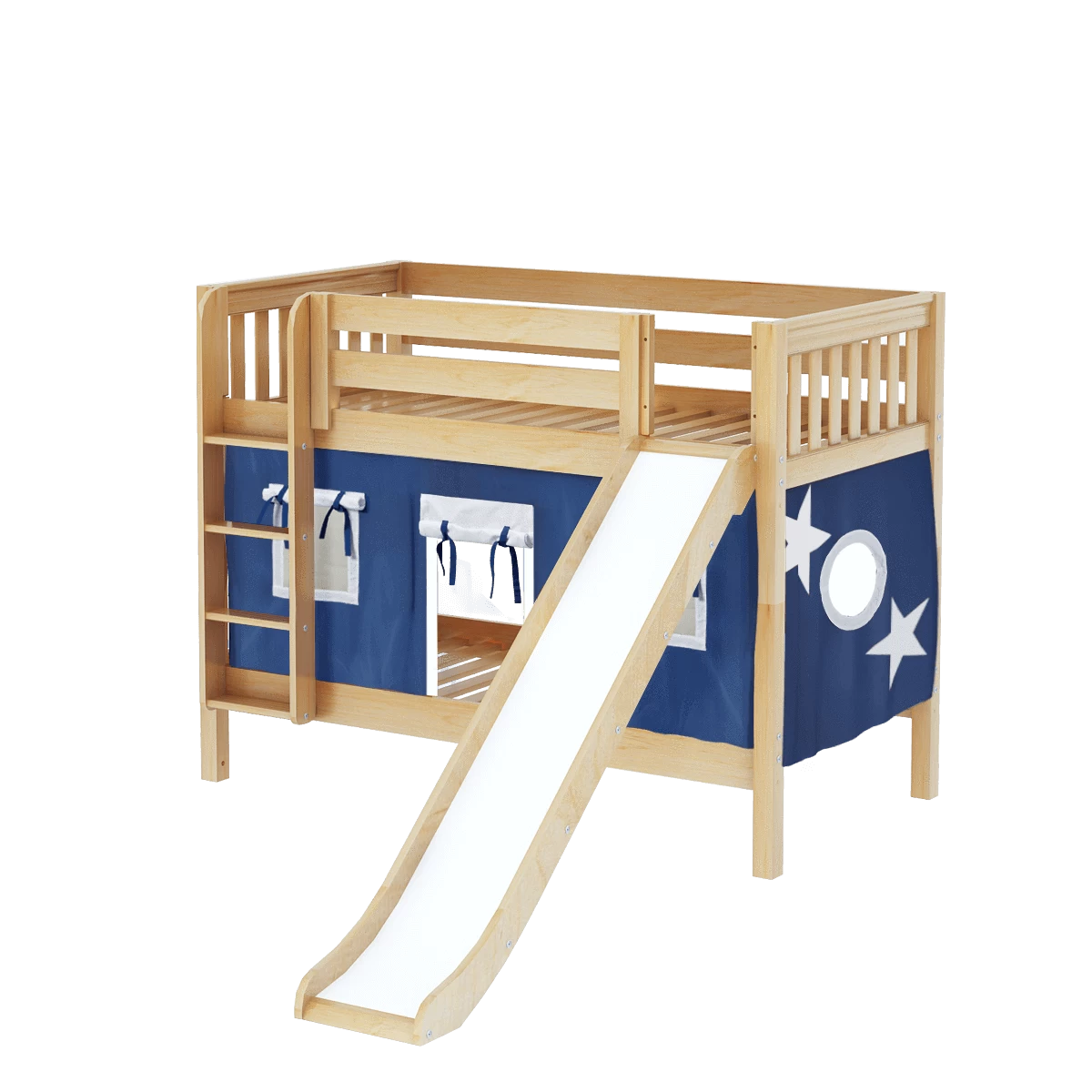 Maxtrix Twin Low Bunk Bed With Straight Ladder, Curtain + Slide