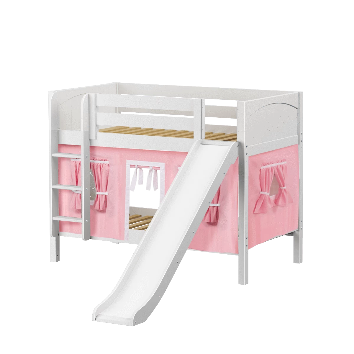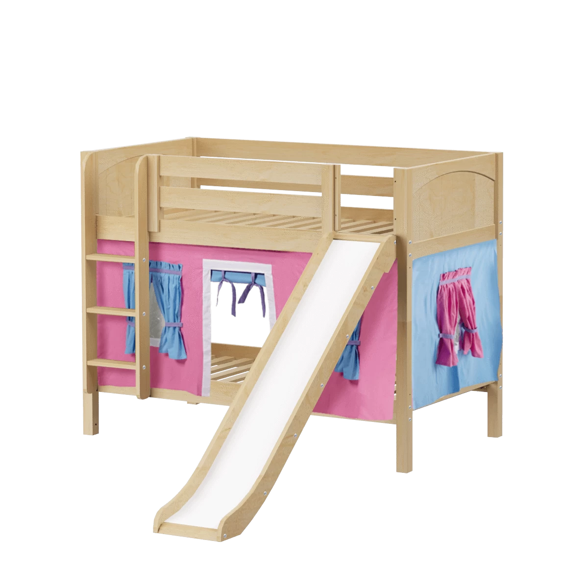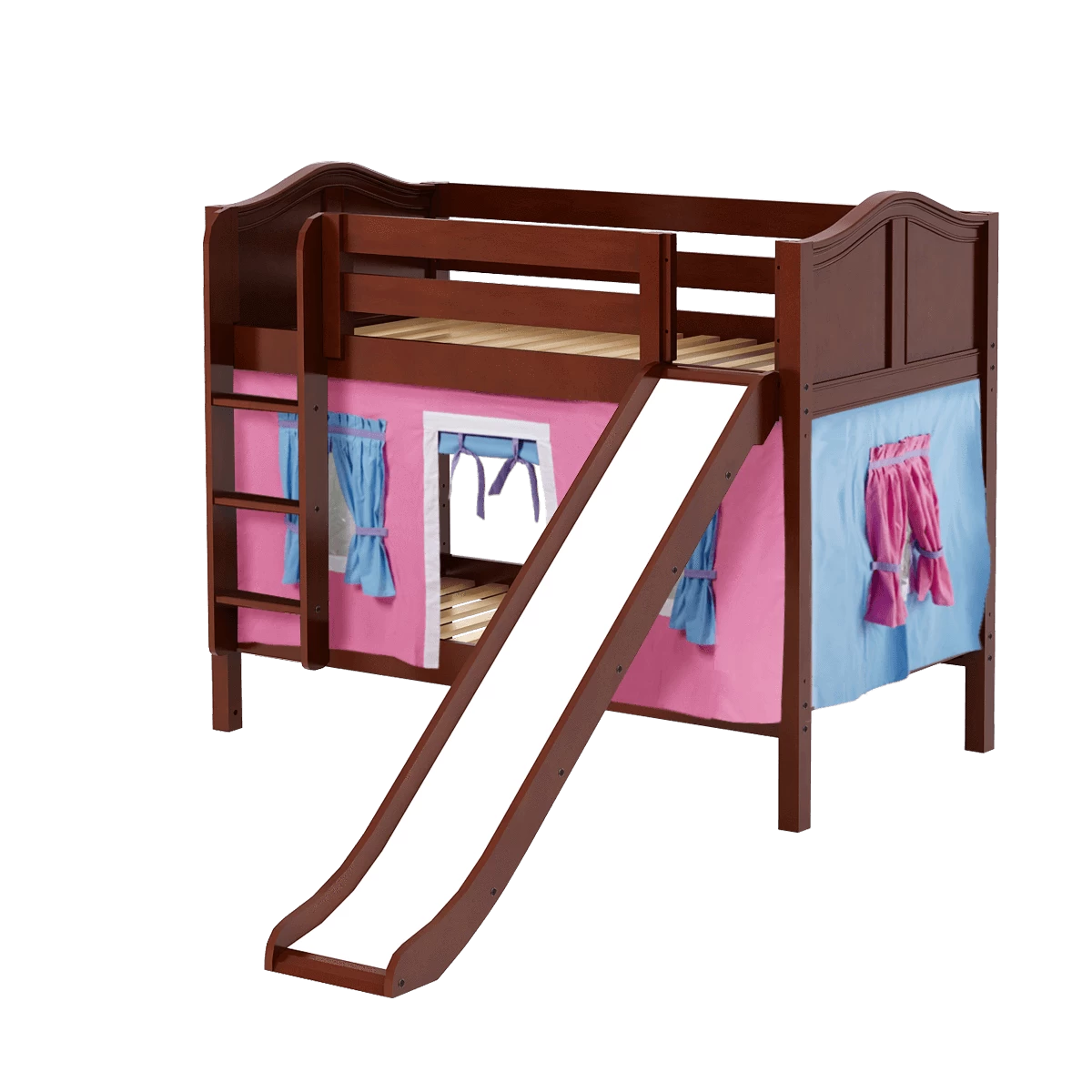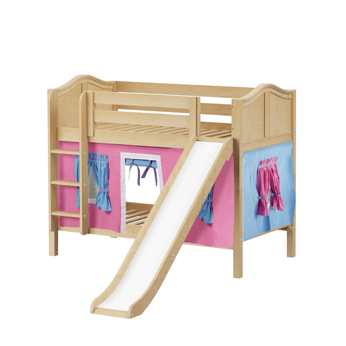 Maxtrix Twin Low Bunk Bed With Straight Ladder, Curtain + Slide