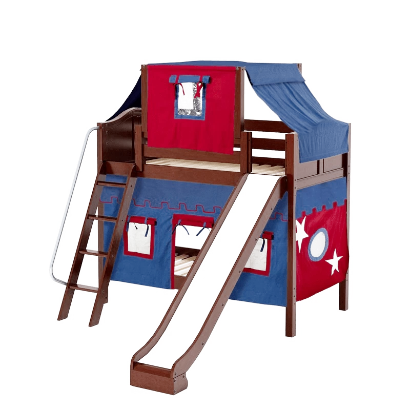 Maxtrix Twin Medium Bunk Bed With Angled Ladder, Curtain, Top Tent + Slide