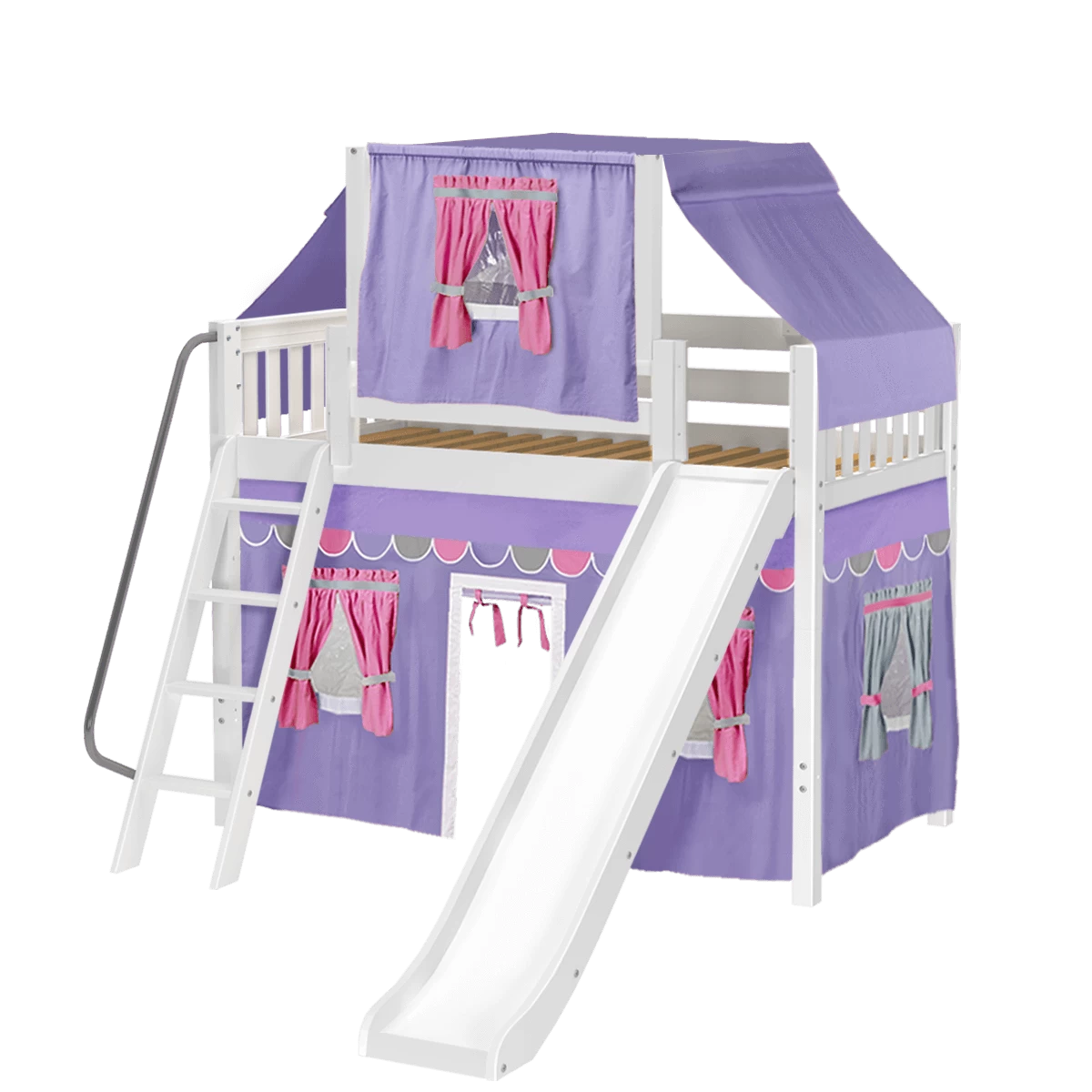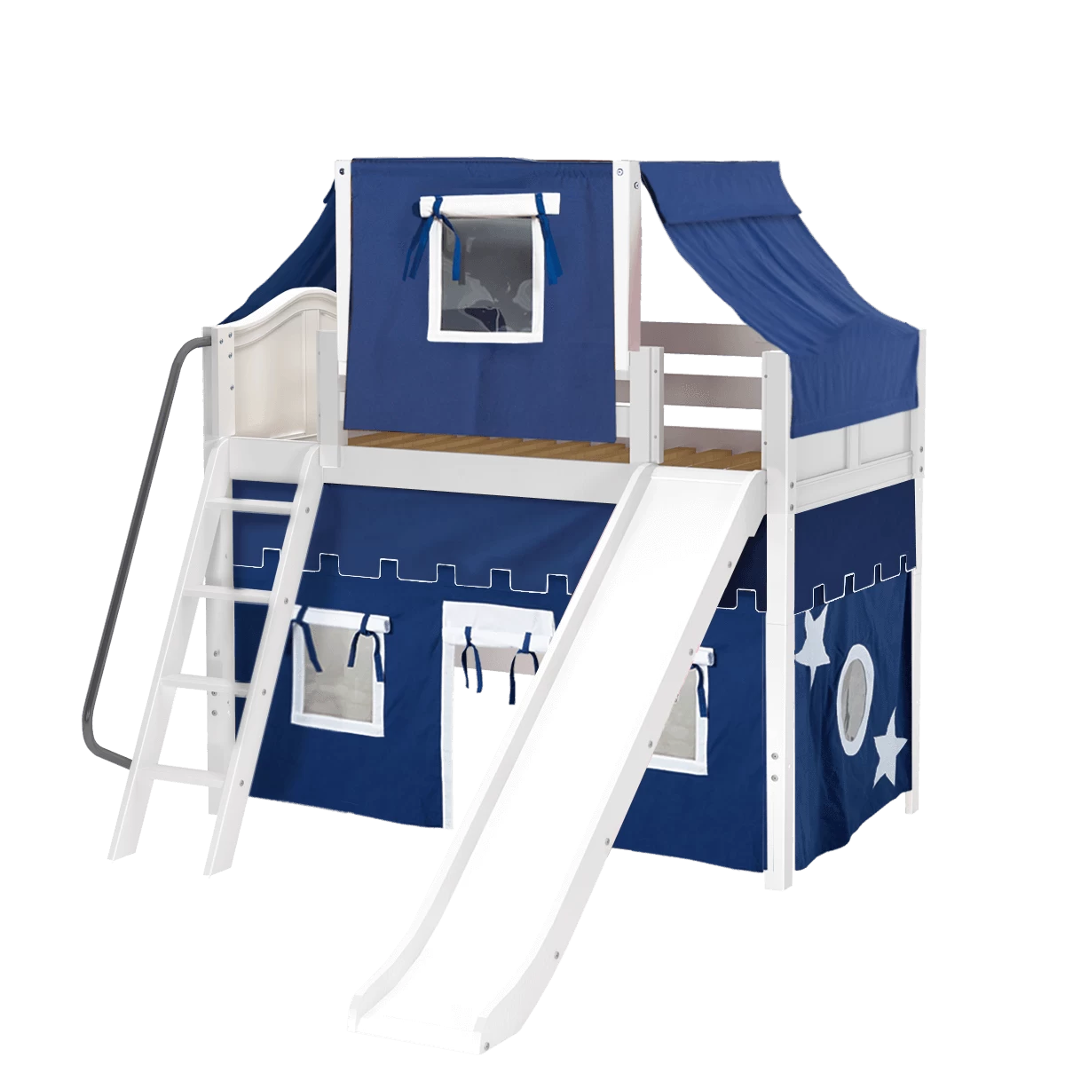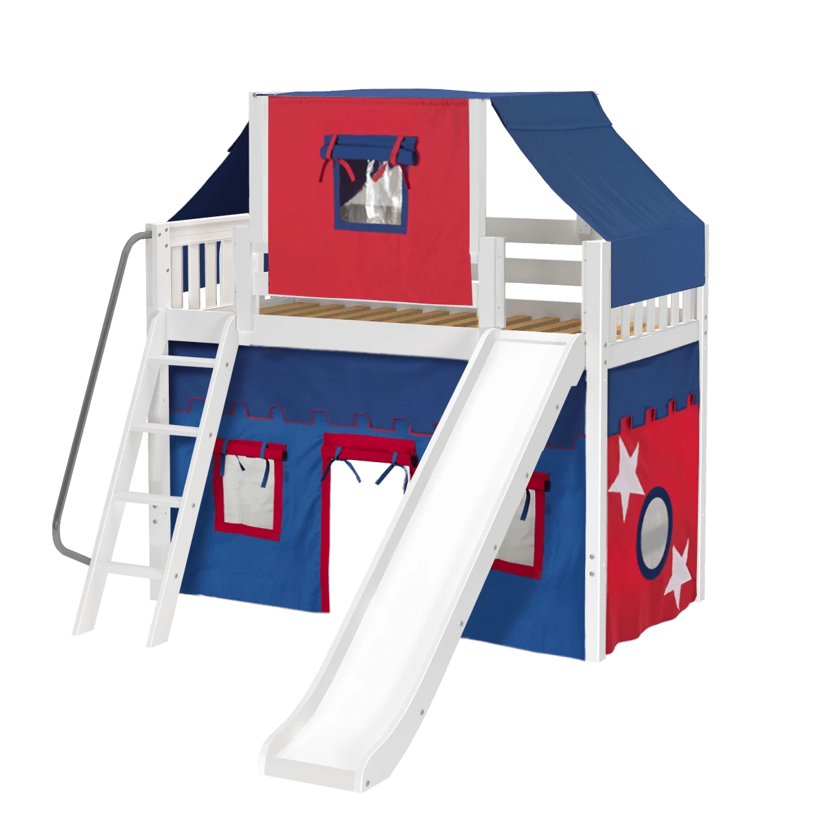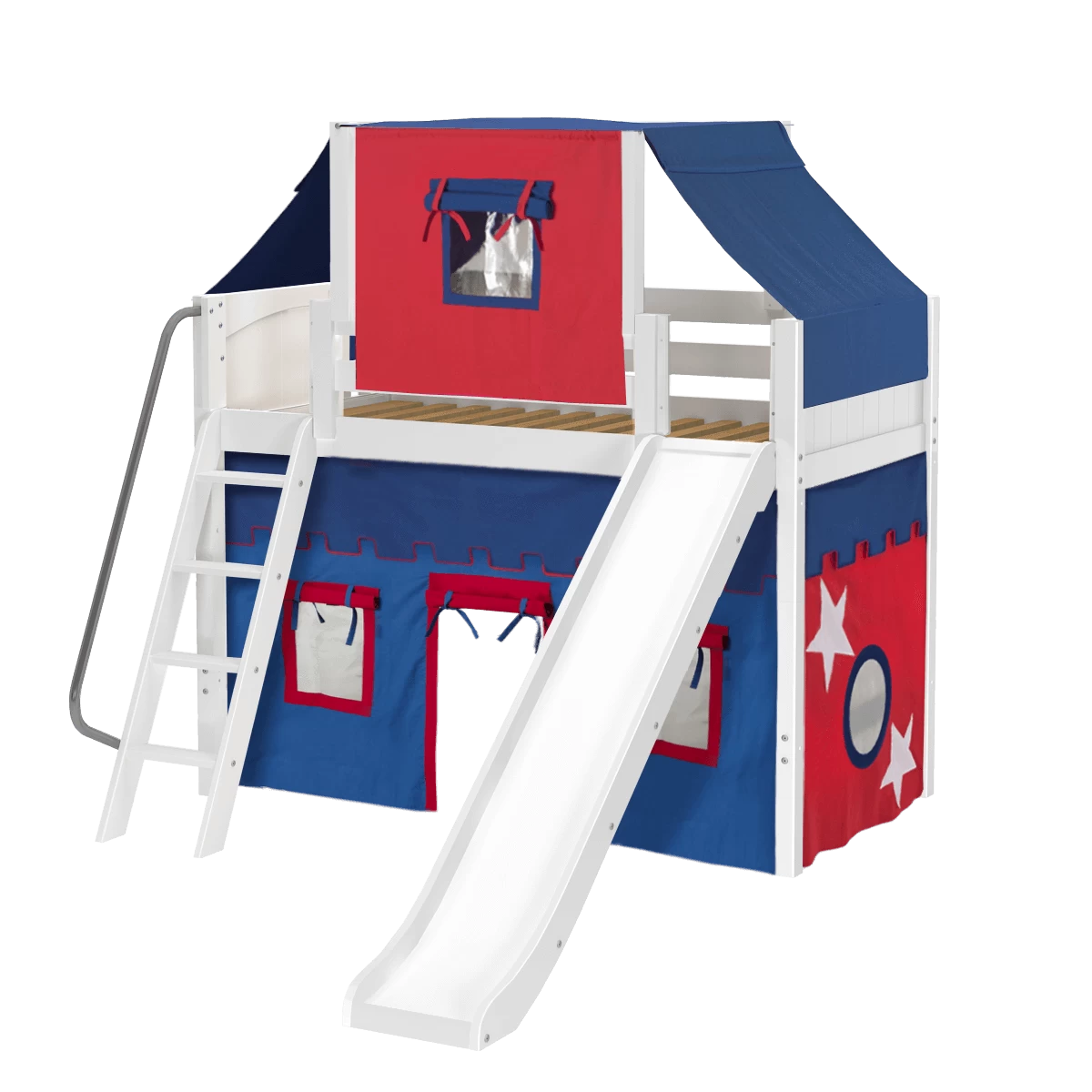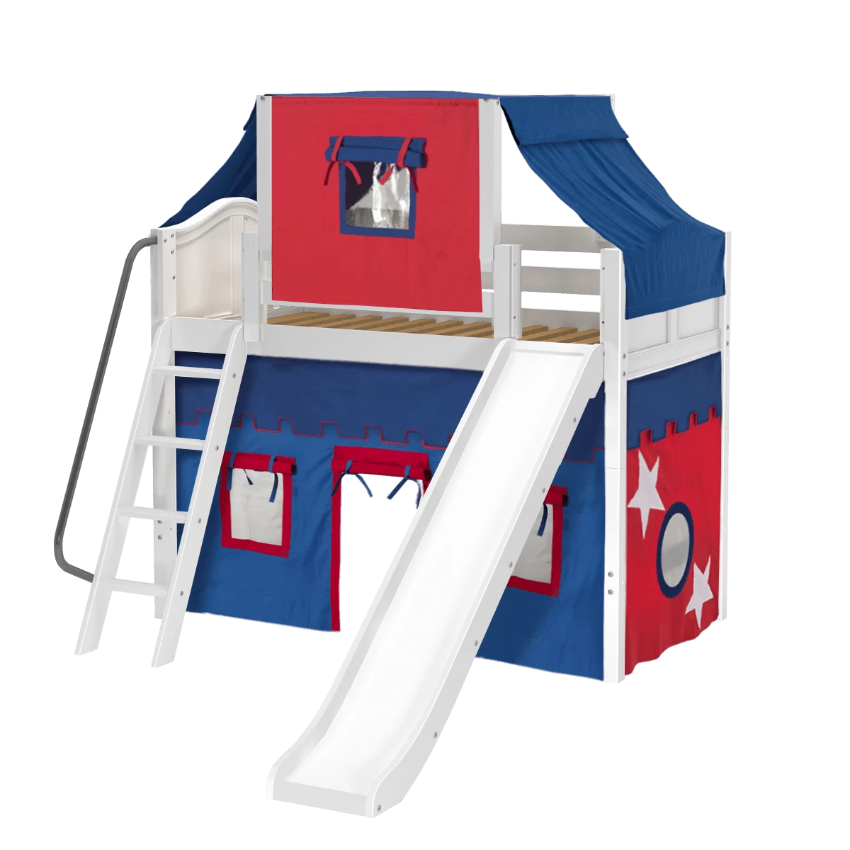 Maxtrix Twin Mid Loft Bed With Angled Ladder, Curtain, Top Tent + Slide