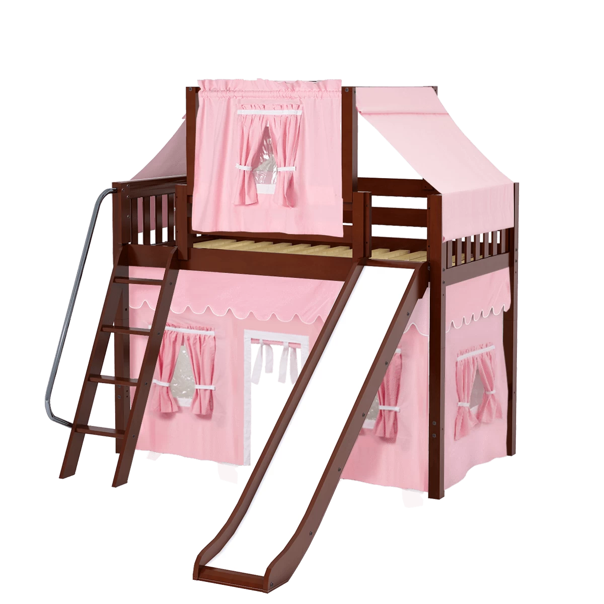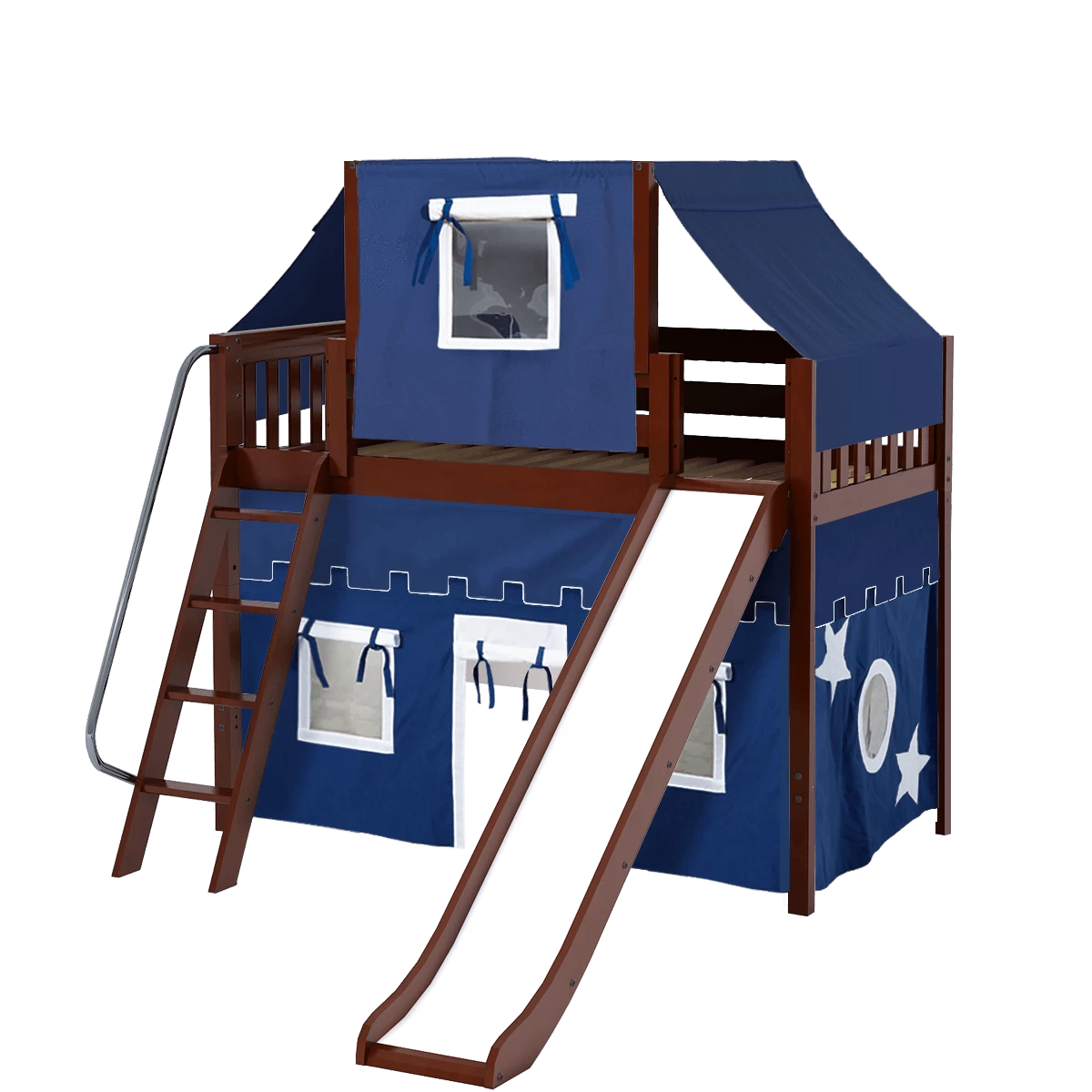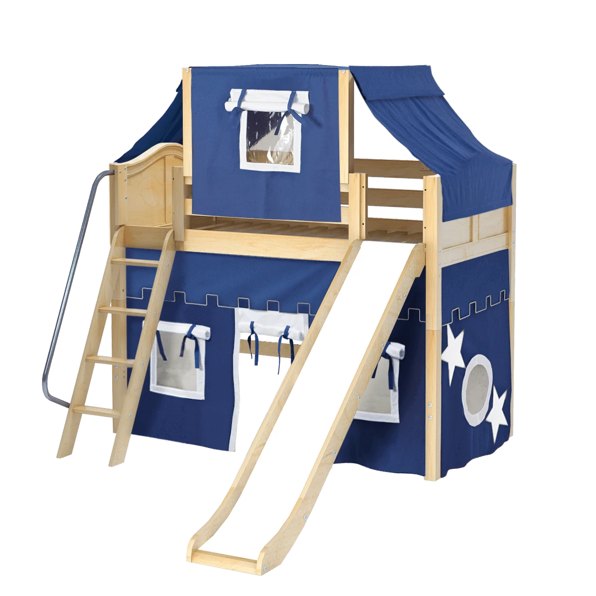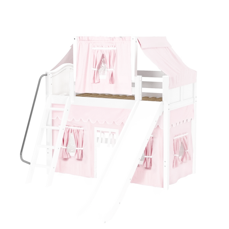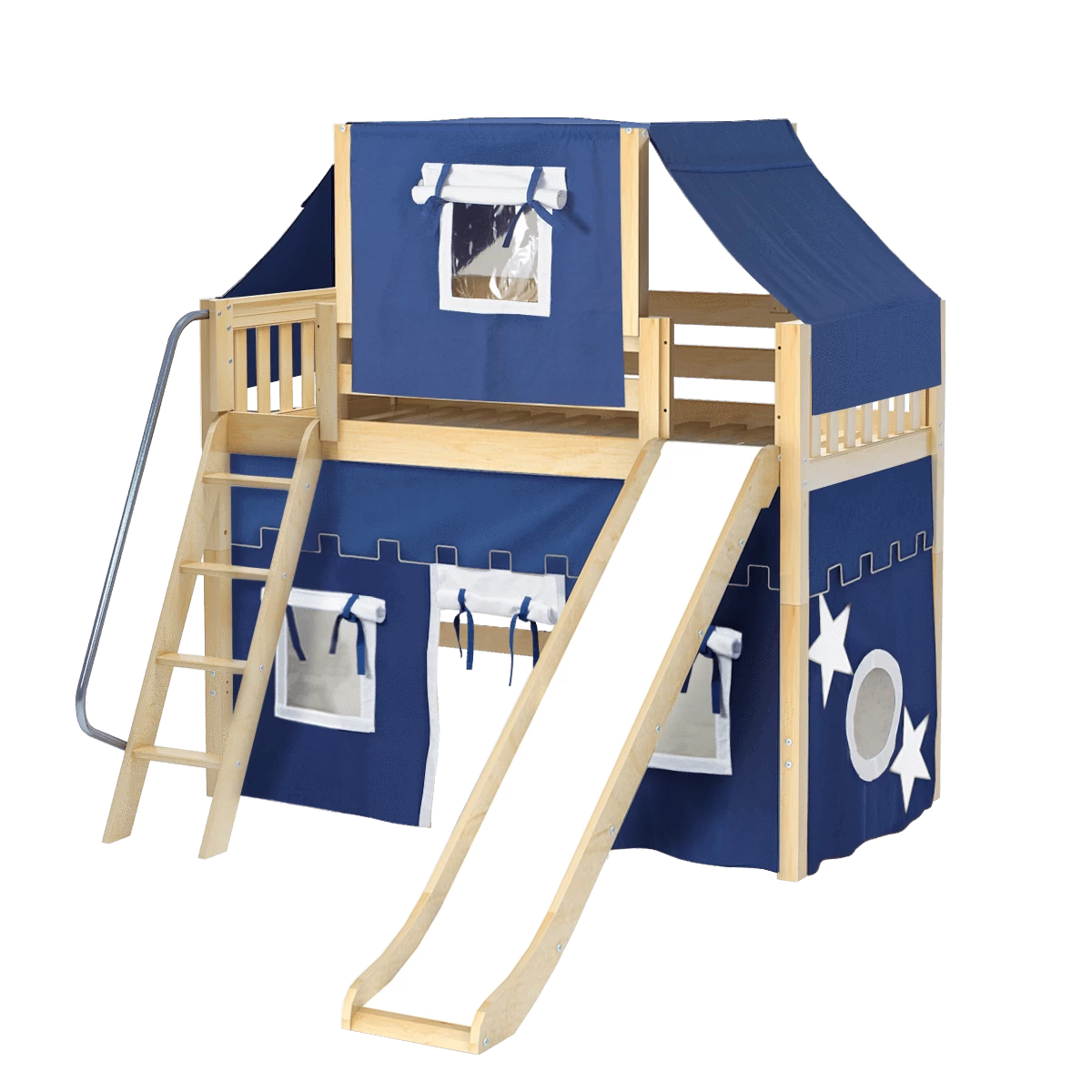 Maxtrix Twin Mid Loft Bed With Angled Ladder, Curtain, Top Tent + Slide