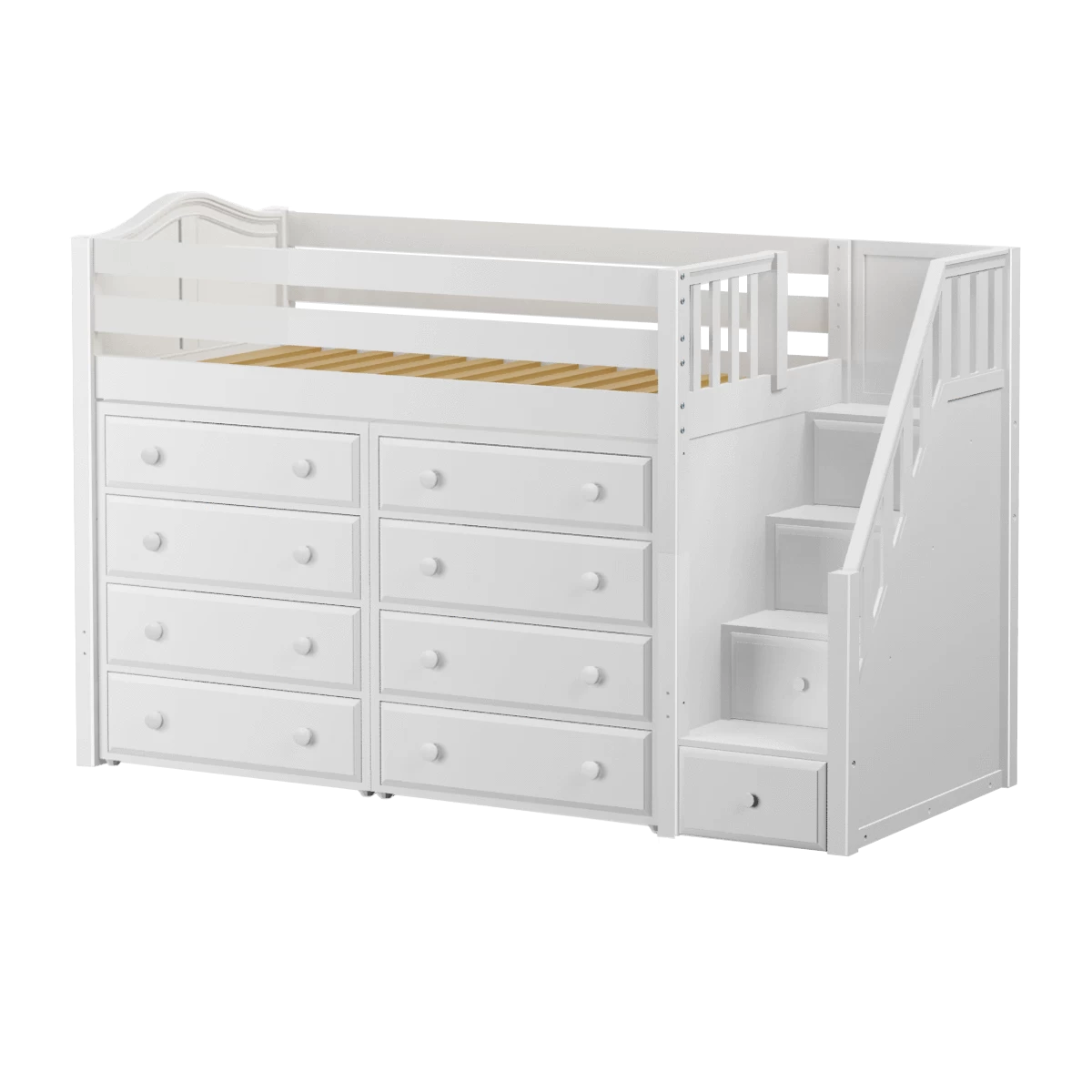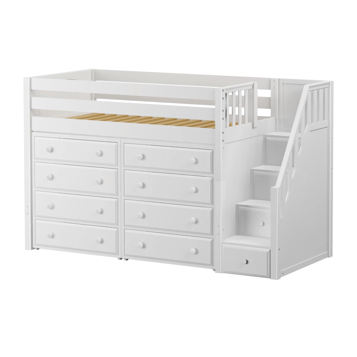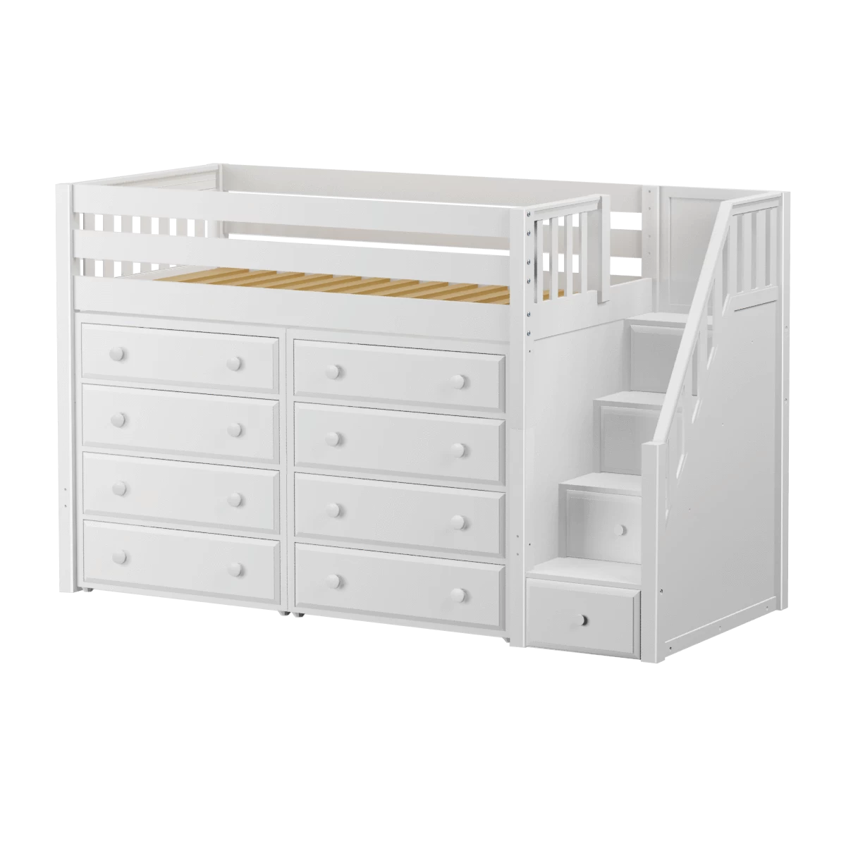 Maxtrix Twin Mid Loft Bed With Stairs + Storage