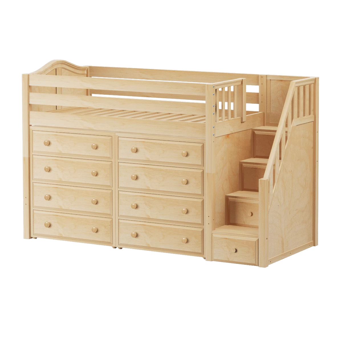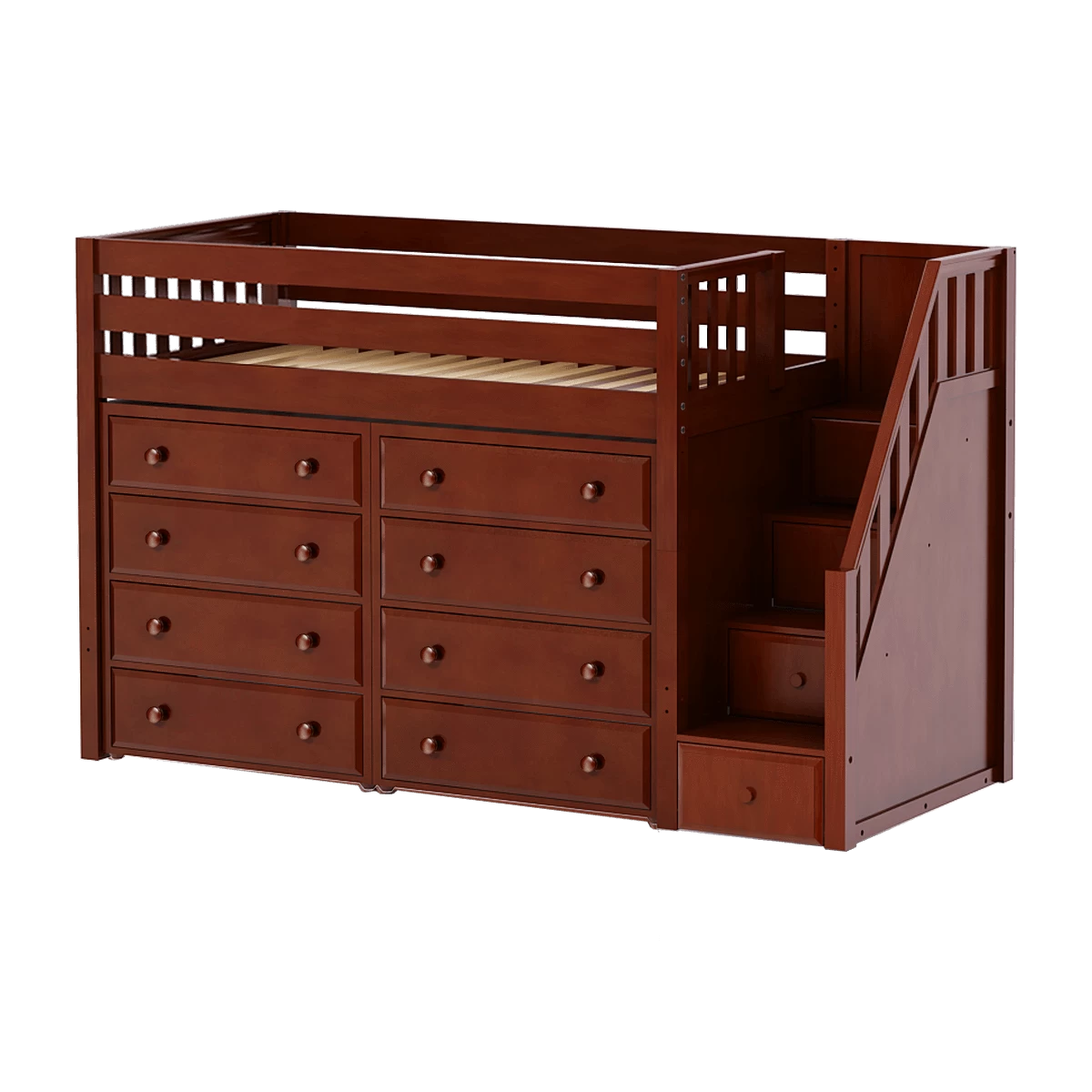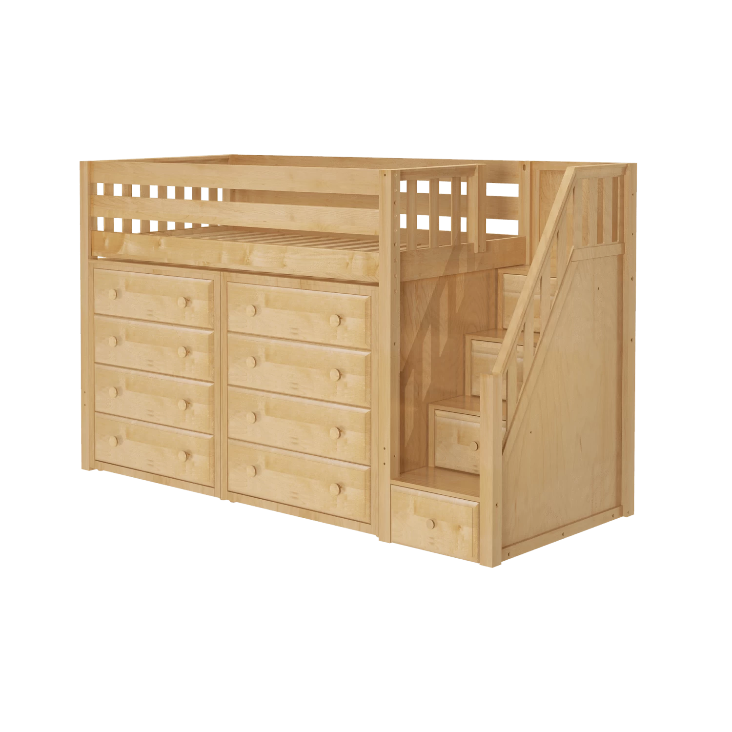 Maxtrix Twin Mid Loft Bed With Stairs + Storage