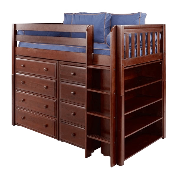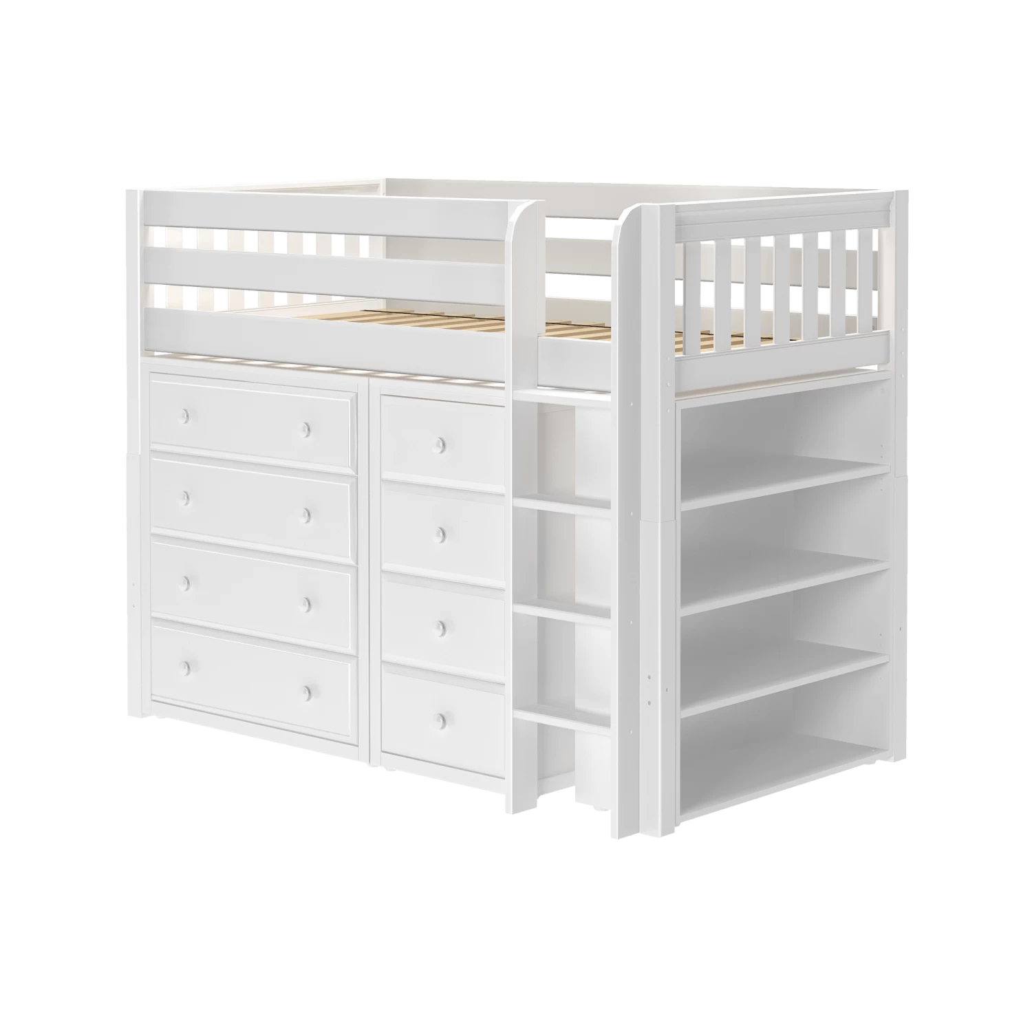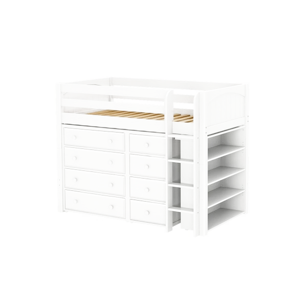 Maxtrix Twin Mid Loft Bed With Straight Ladder + Storage