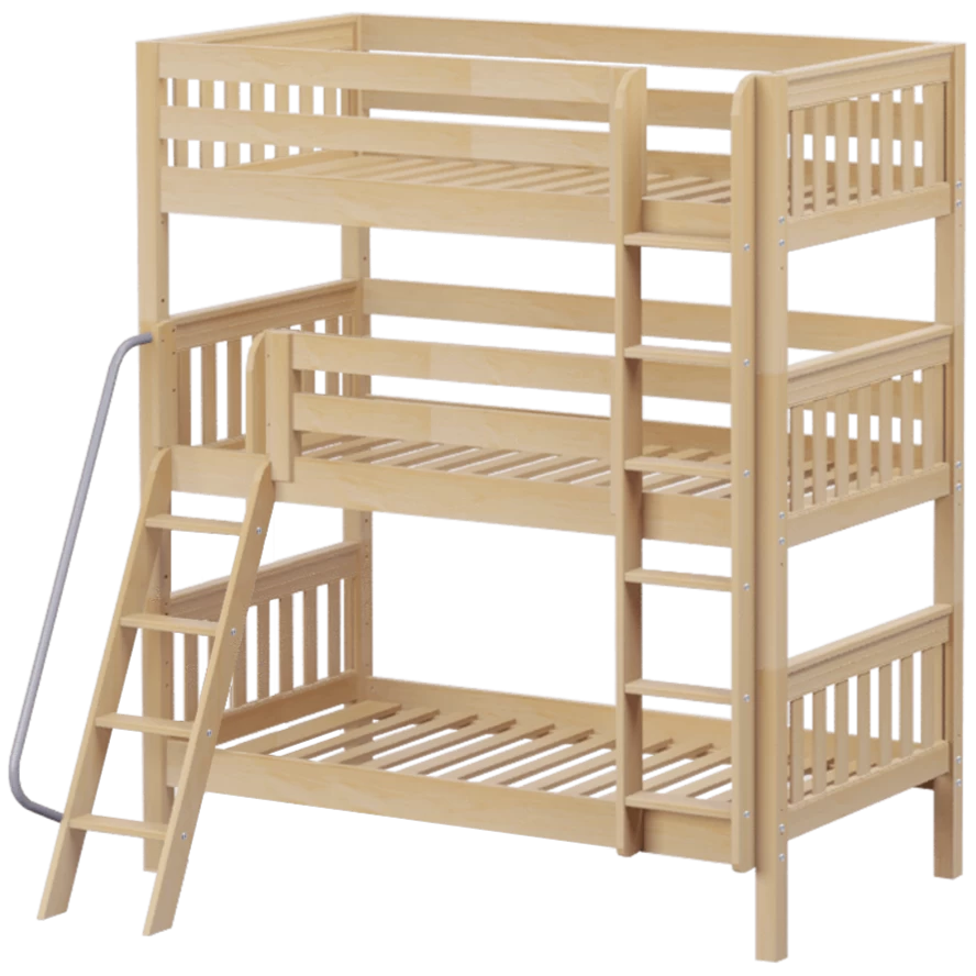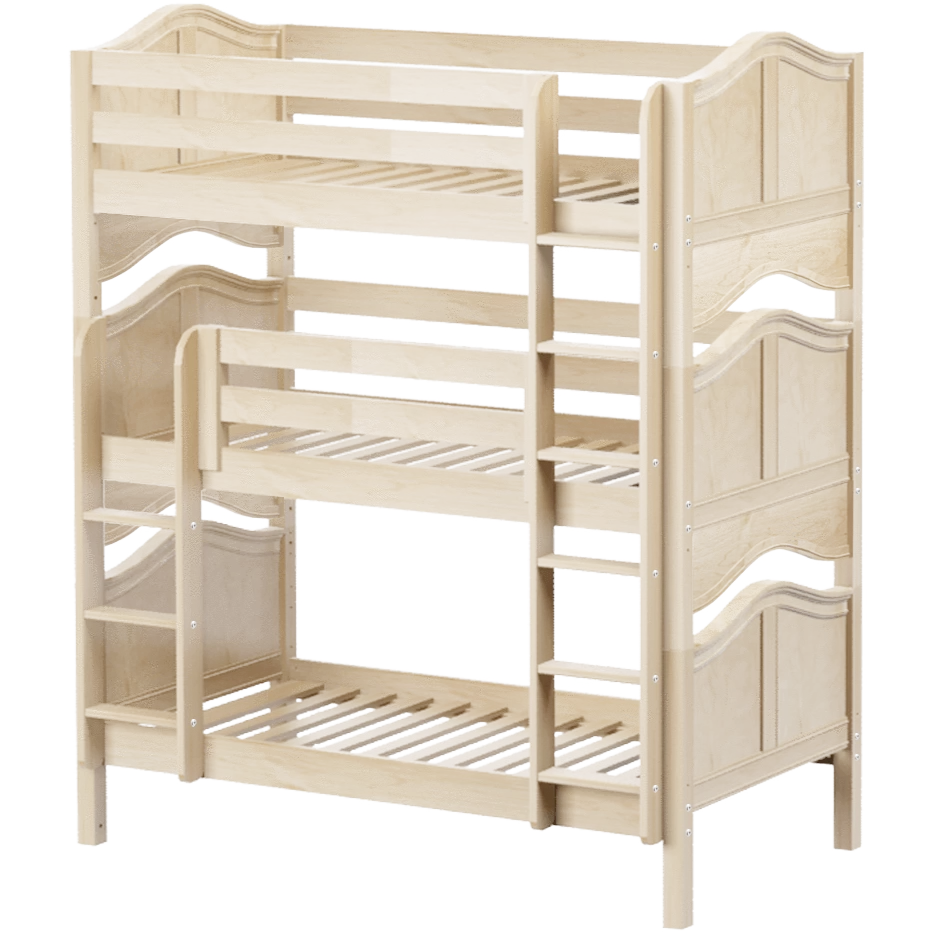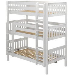Full house? No problem! Whether you have multiple children sharing a room or a need a solution to accommodate overnight guests, our triple bunk is a space saving way to sleep three. Stacked twin beds form one super sturdy unit. Patented Rock Lock system keeps it strong + stable.