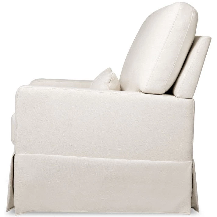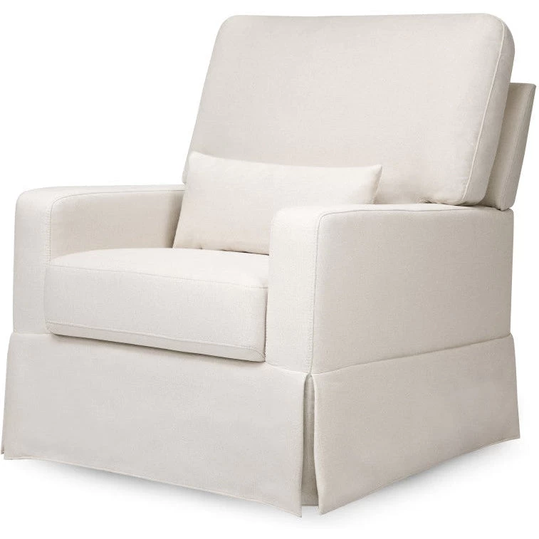 The Crawford Glider offers a modern take on traditional slipcover style and brings nursery comfort to a new level with its plush pillowback design, added lumbar pillow, and wide seat. Its smooth, back-and-forth gliding motion helps you rock your baby to sleep with ease, while the convenient swivel creates an inviting repose for both you and your baby.