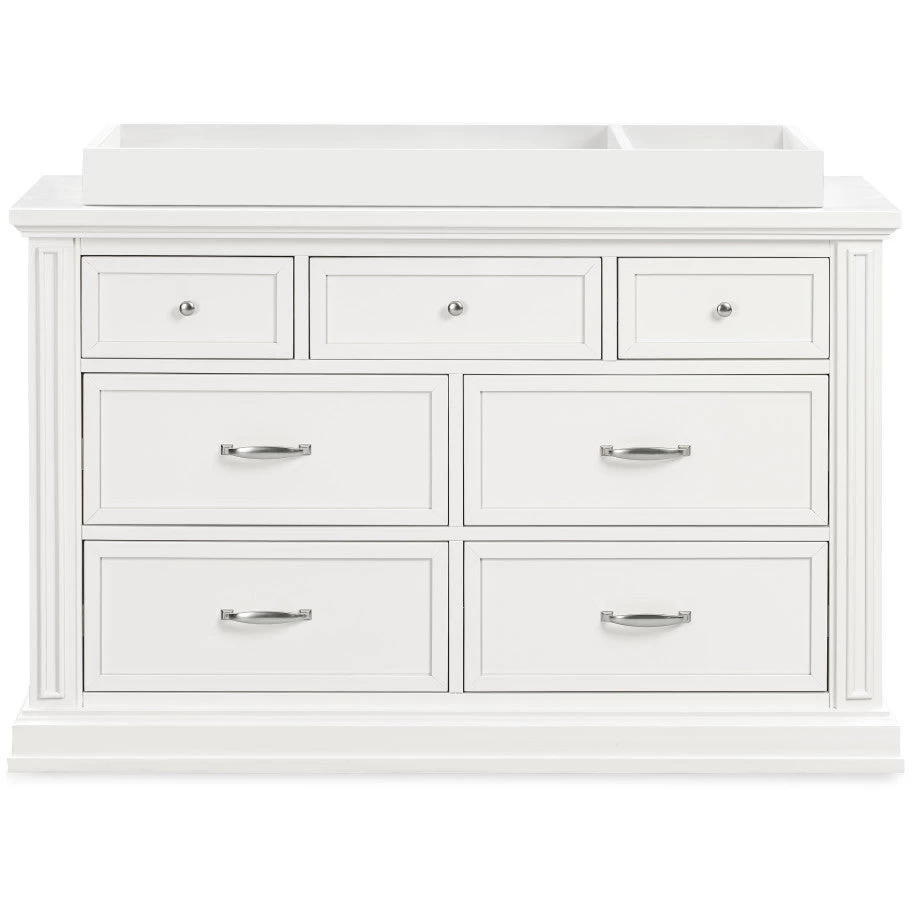 The Durham 7-Drawer Double Dresser combines thoughtfully designed molding with platform detailing, making it a bold complement to the Durham Crib. The dresser’s seven spacious drawers offer a stylized storage solution that will last beyond baby years.