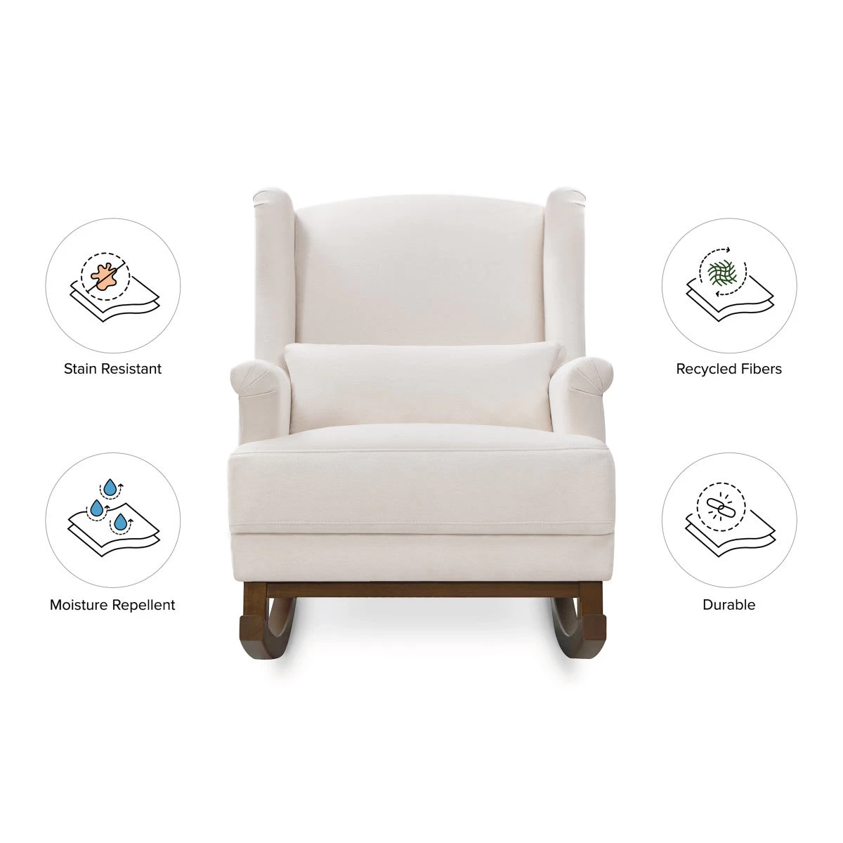 Bringing a contemporary take to a classic seating style, the Miranda Wingback Rocker captures timeless details with its elegant wood legs and stylized pleating on its arm rests. The Miranda’s plush T-cushion and wingback create the perfect, cozy nook for feedings or to gently rock your baby to sleep.