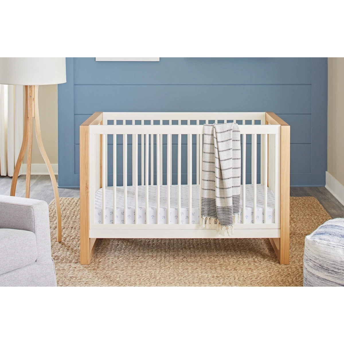 Crisp and minimalistic, the Nantucket 3-in-1 Convertible Crib is a modern take on the classic coastal design, with its clean lines and natural wood grains. Featuring neutral-hued wooden frames, balanced by rounded slats, the Nantucket is a transitional piece that will grow with your family.