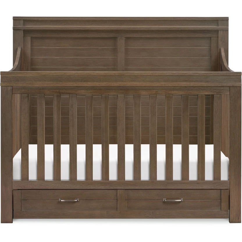 Reminiscent of the idyllic countryside, the Wesley Farmhouse 4-in-1 Convertible Crib takes inspiration from classic, farmhouse style. With the addition of an under drawer, the Wesley Crib provides ample space for your baby’s necessities, while its rustic shiplap design combines with graceful curves to create a cozy place for your baby to sleep.