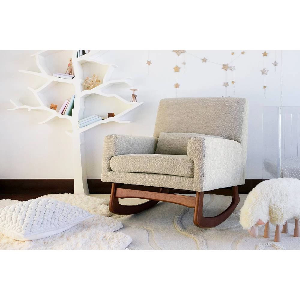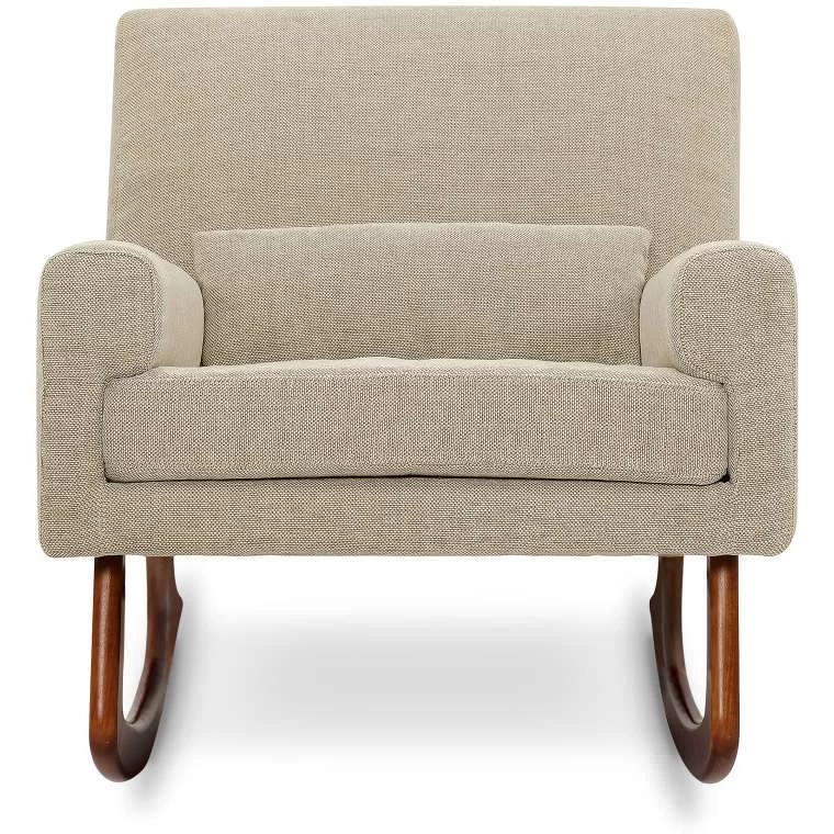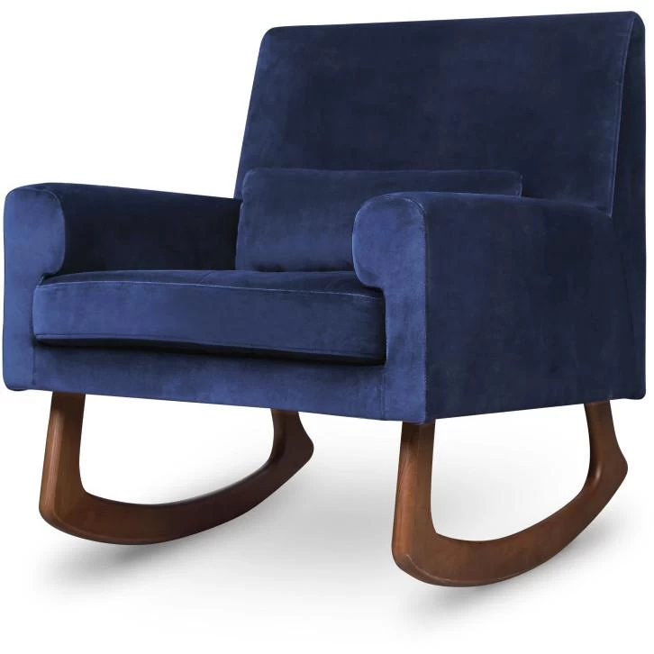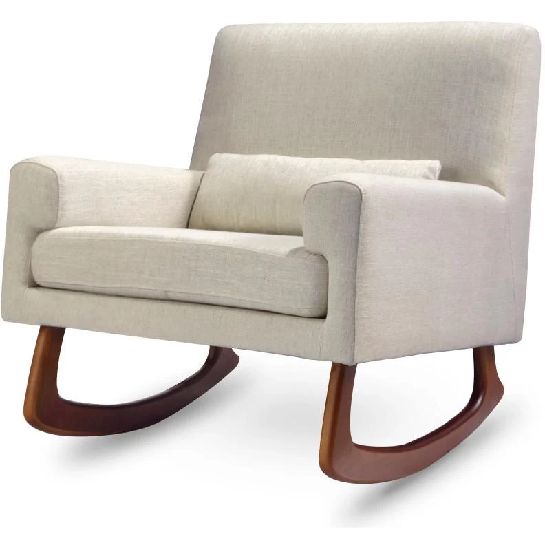 The well-balanced Sleepytime Rocker is lightly padded and finely upholstered with a fitted back using a crisp and rich polyester, linen and viscose blend. Ash hardwood legs allow for a smooth rocking motion.