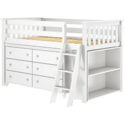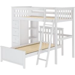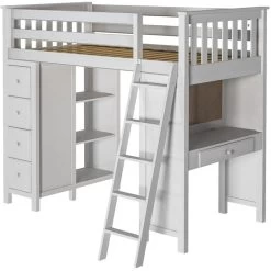 Jackpot Deluxe Windsor Twin Storage Loft Bed With Dresser + Bookcase