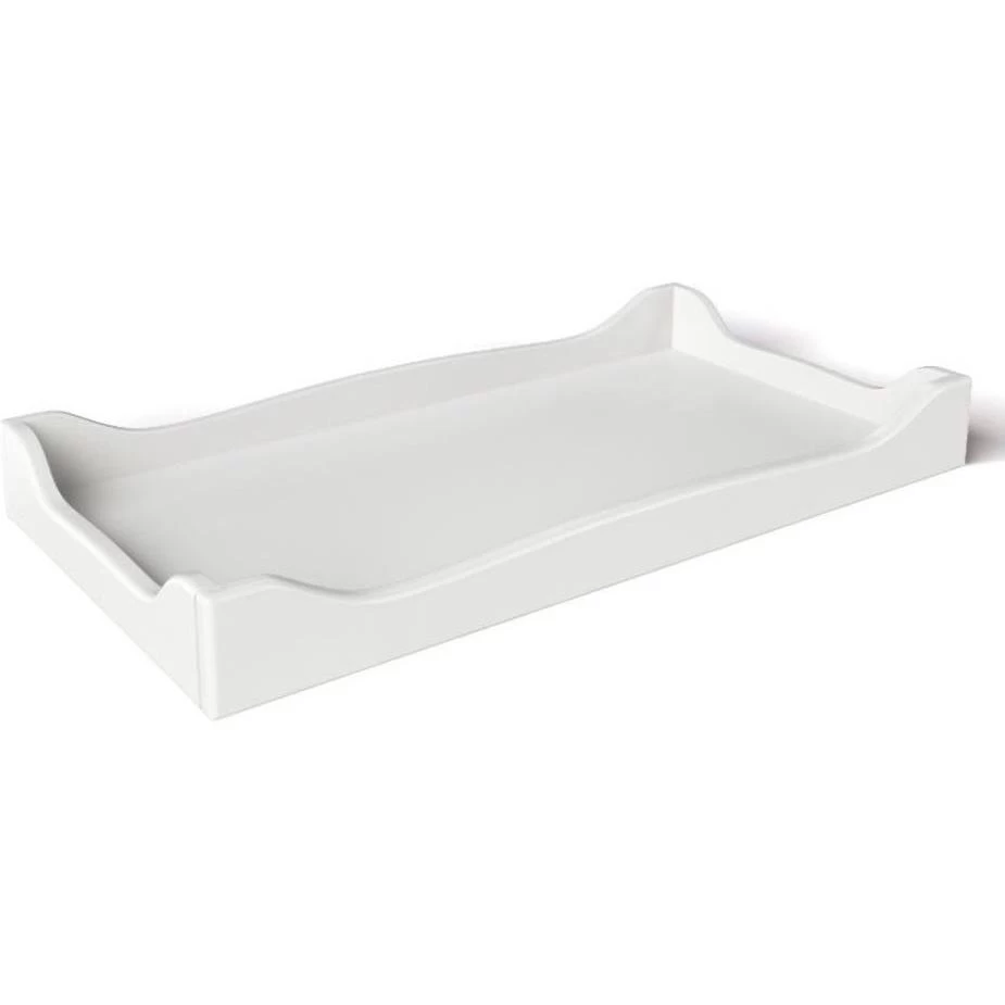 The changing tray is designed to maximize changing station safety. The scalloped edges prevent the pad (not included) from slipping and protect the dresser surface from spills and scratches. The tray can be secured from the back of dresser with two metal brackets.