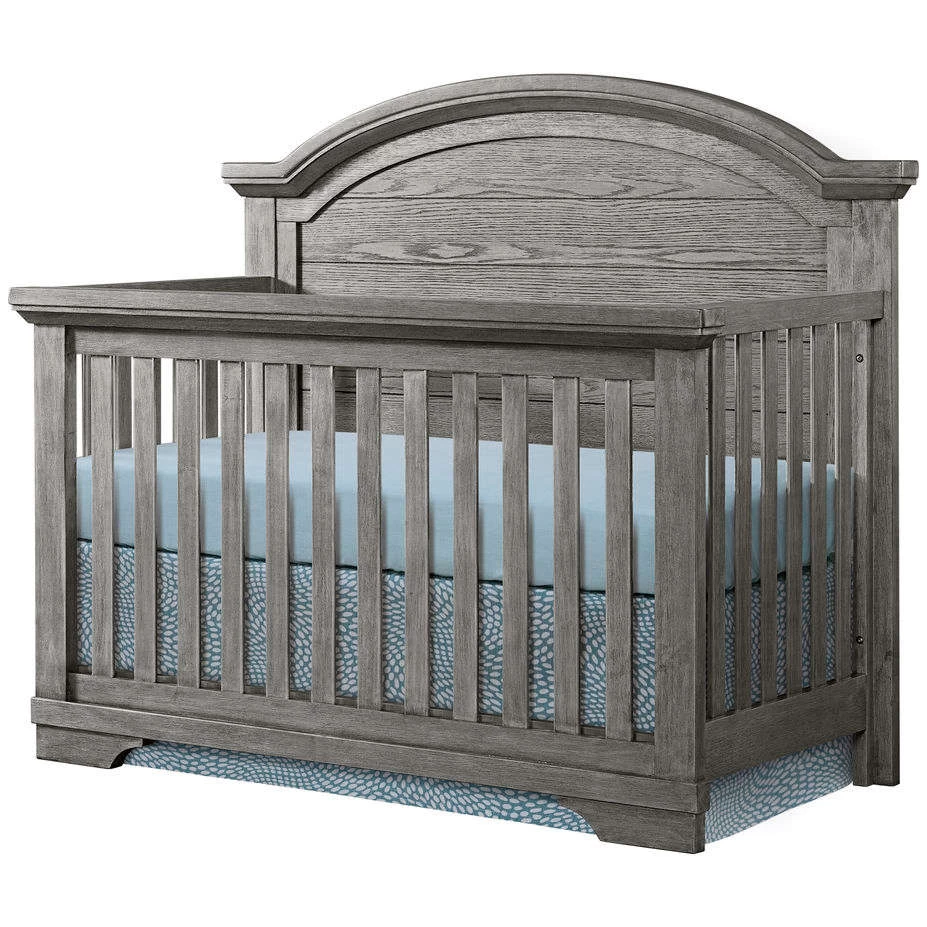 The Foundry Arch Top Crib converts to a Daybed, Toddler Bed, and Full Bed.
